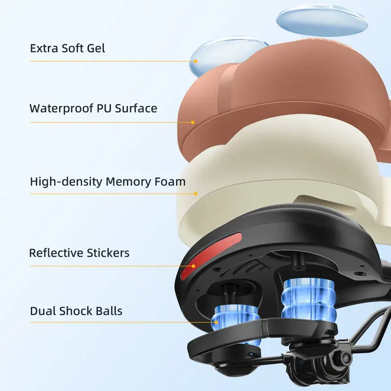 ·Exceptional Shock Absorption: Tackle rugged terrains effortlessly. Our silicone gel cushion boasts remarkable shock-absorbing properties, effectively minimizing the impact of bumps and uneven surfaces for a smoother ride.