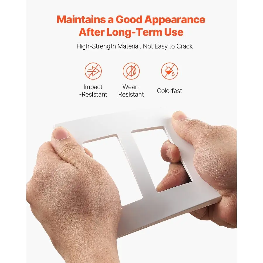 VEVOR Rocker Light Switch Wall Plates, 2 - Gang Decorative Outlet Covers, Standard Size 4.57in Lx 4.53in H Unbreakable Polycarbonate Thermoplastic Faceplate for Receptacle OutletSwitch(5 Pack, White)VEVOR Rocker Light Switch Wall Plates, 2-Gang Decorative Outlet Covers,Standard Size 4.57in L x 4.53in H Unbreakable Polycarbonate Thermoplastic Faceplate for Receptacle Outlet&Switch(5 Pack, White) Dual Control Convenience High Compatibility Enhanced Security Durability