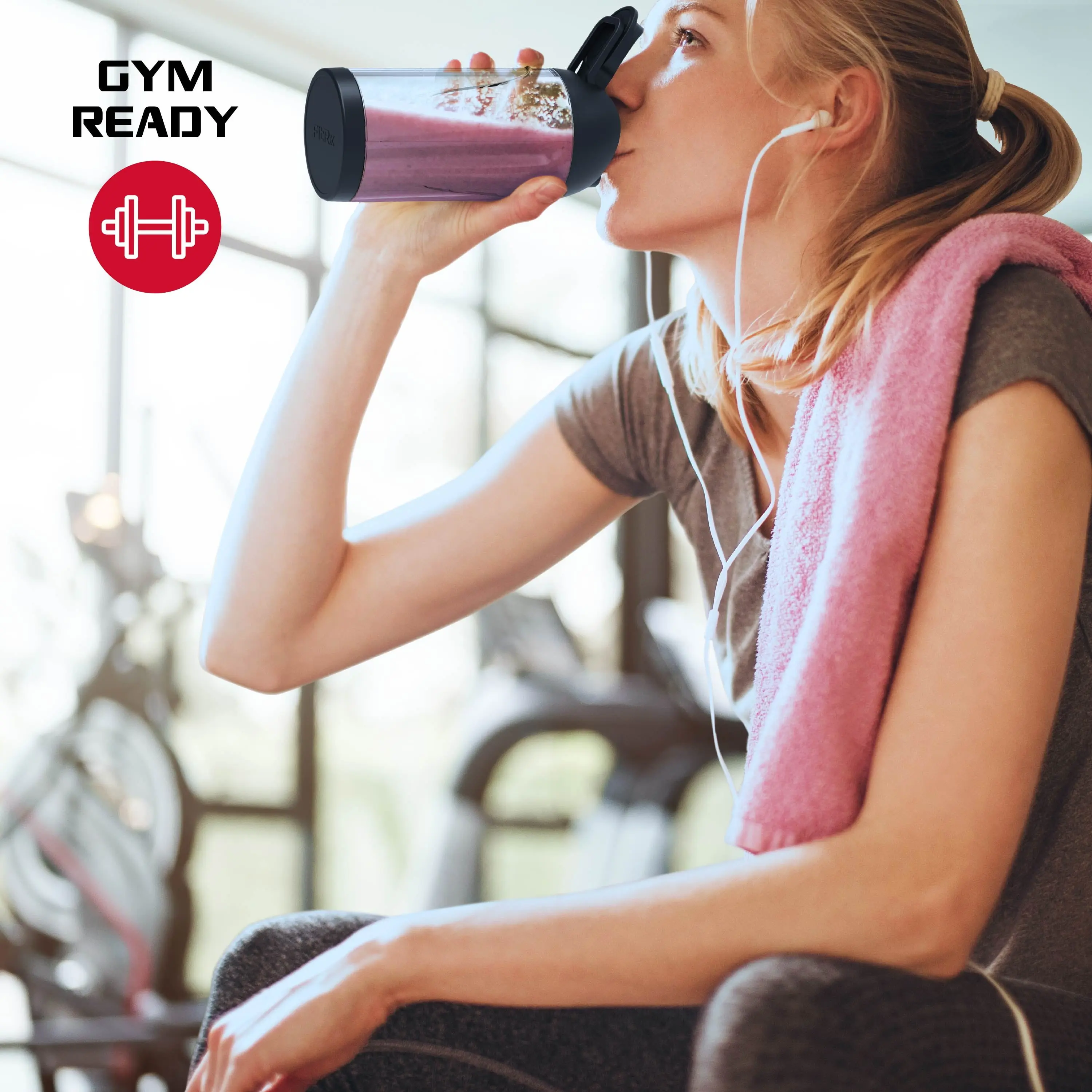 Discover total blending freedom with the FitRx Rocket Smoothie Blender Bottle! This new portable blender features six ultra-sharp stainless-steel blades to grind small ice cubes and blend frozen fruits, veggies, and protein powders with ease. It’s the perfect blender for smoothies, shakes, and frozen drinks. With 18oz capacity and a portable design, you can forget about other blenders as the FitRx Rocket Smoothie Blender Bottle in black is all you need to get your shake or smoothie fix on the go!
