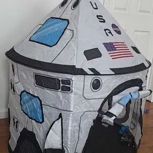 ·Rocket ship play tent set up includes a white space graphic tent, a tote for carrying, roof anchors, 4 sturdy poles, and floor anchors. The set is portable and lightweight, so you can install the tent either indoors or outdoors.