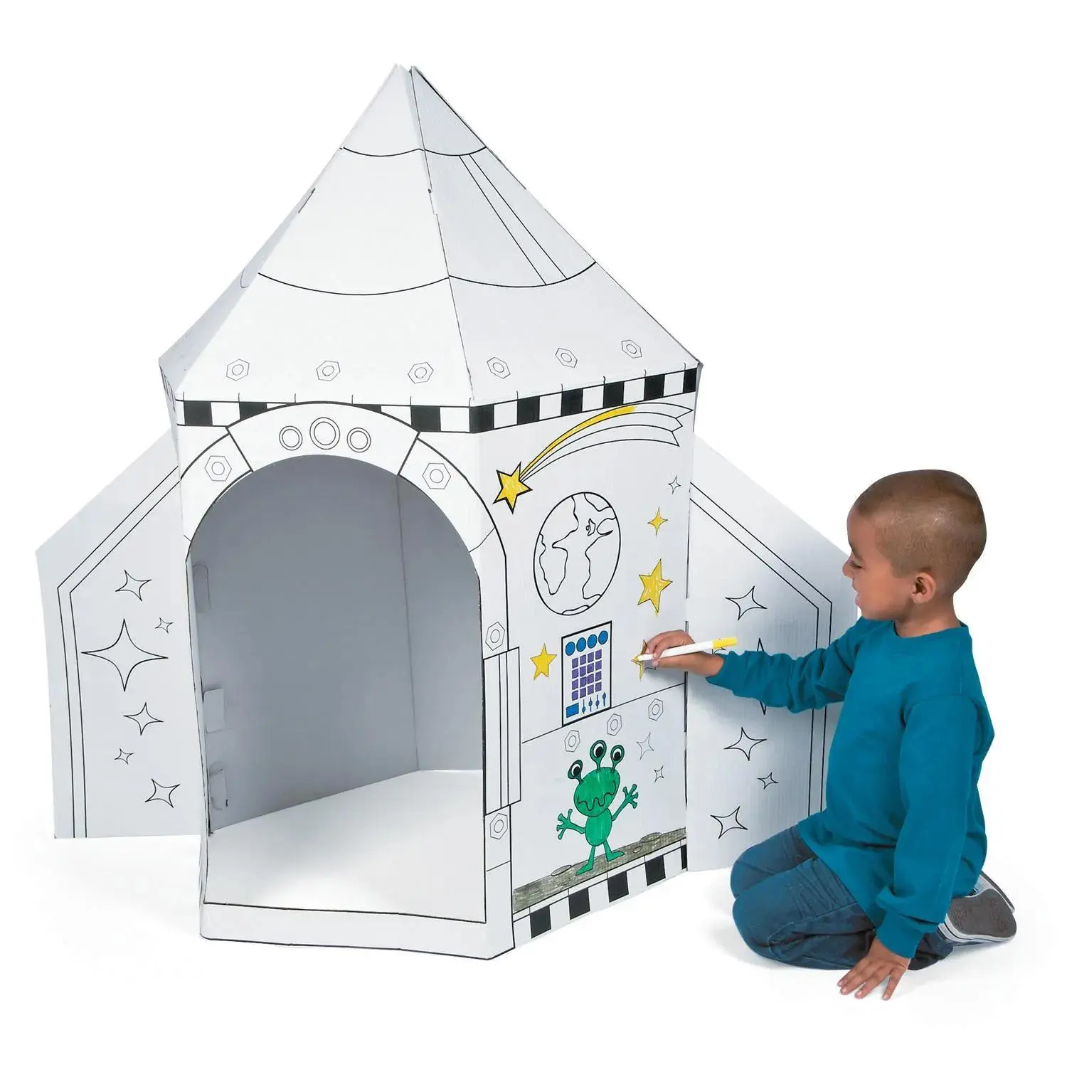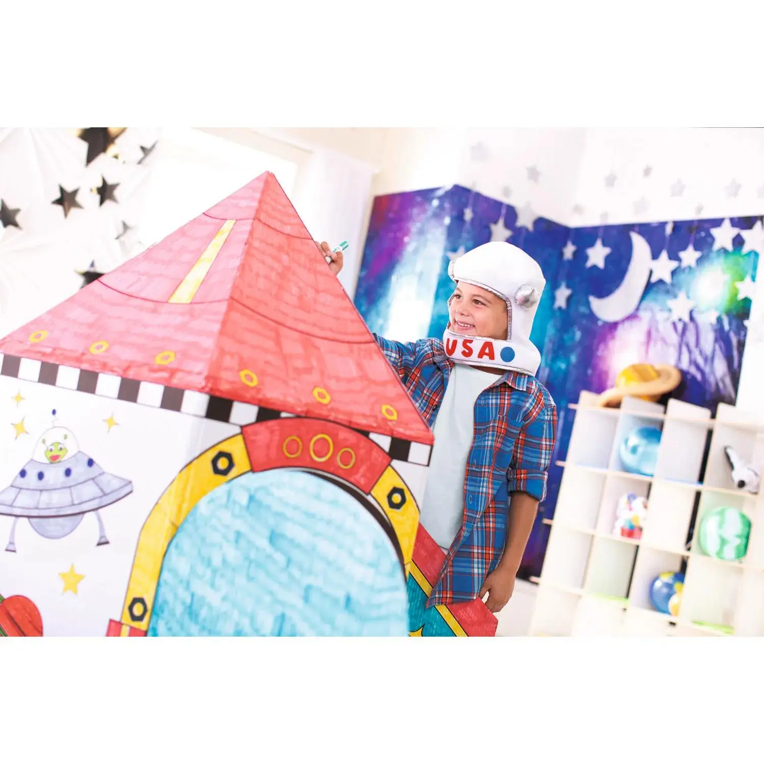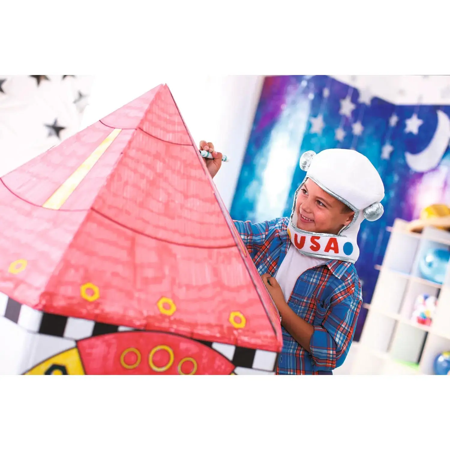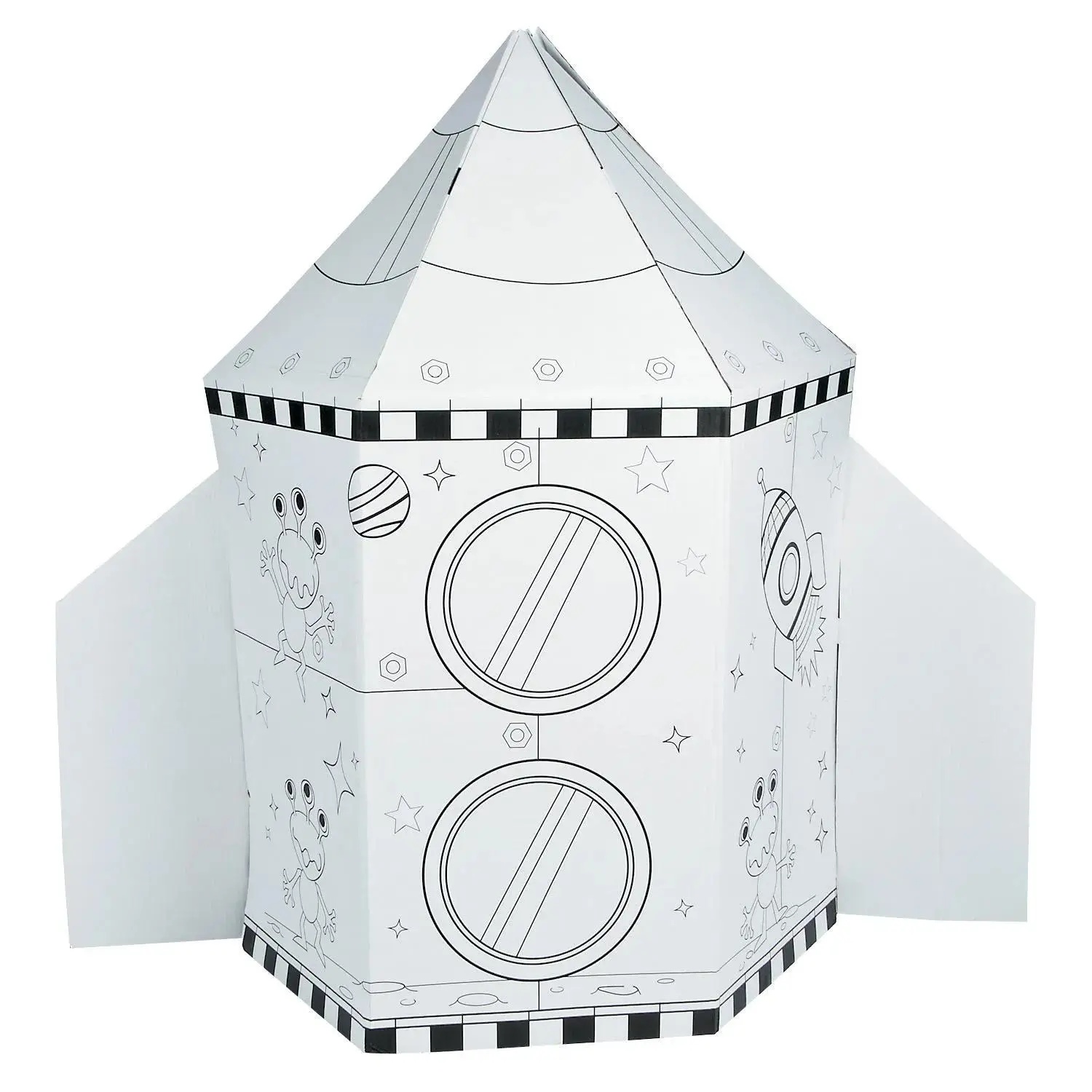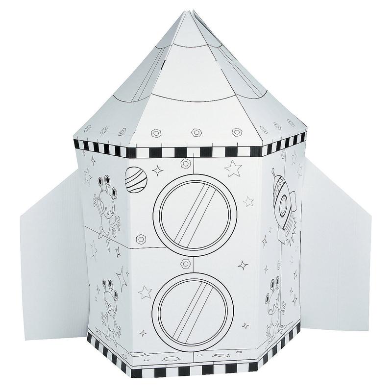 Use your own markers, crayons or paint to make this great craft ready for lift-off! This Color Your Own Rocket Ship features dual doors, window, porthole and pretend control panel. Both boys and girls will love spending hours coloring this arts and crafts project. When finished, this playhouse is the perfect place for kids to enjoy reading a book or pretend they're on an epic space quest. Folds easily for storage.br