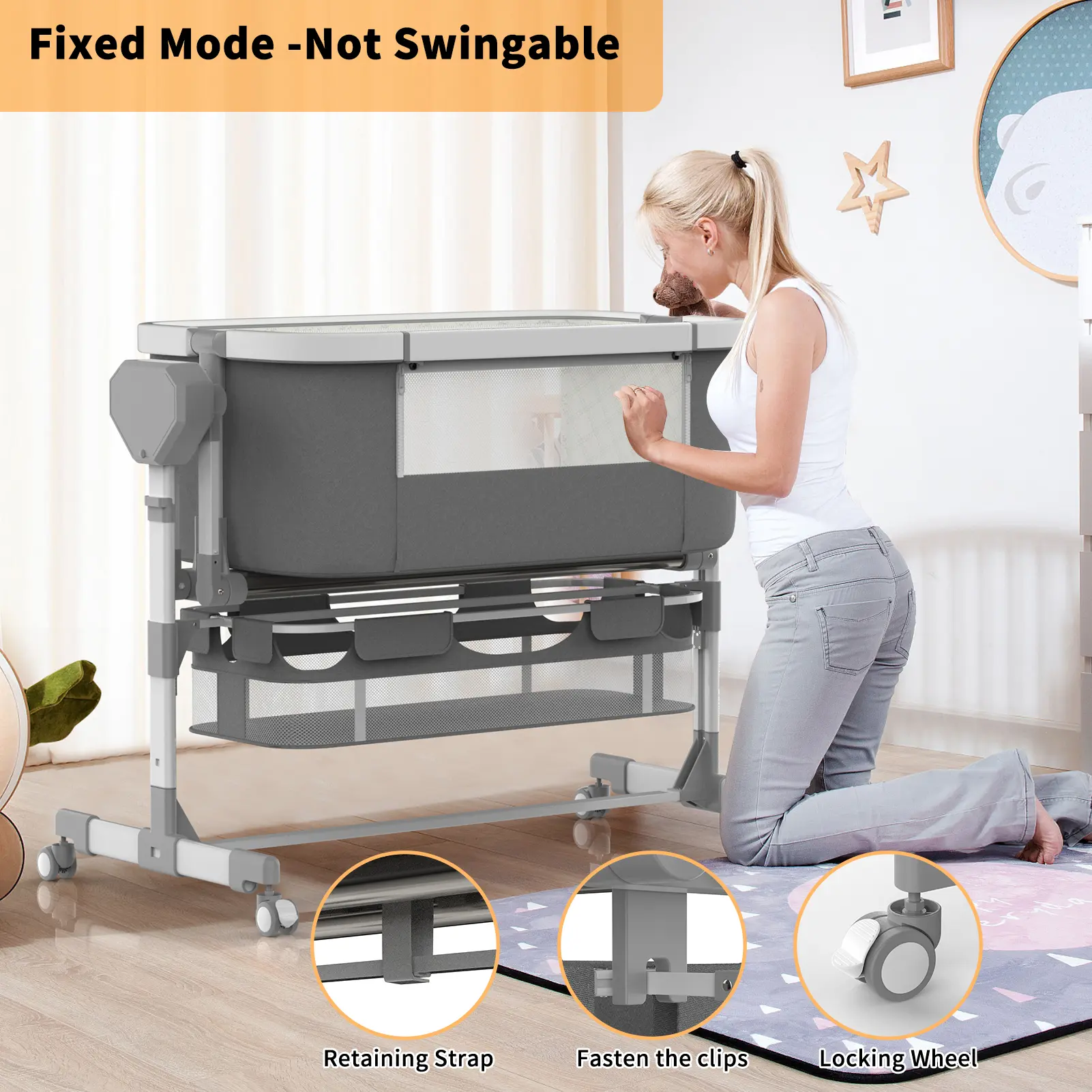 【Bedside Sleeper】 Remove the side rails and place it next to your bed to easily convert it into a bedside baby bassinet. Baby bassinet & baby cradle & bedside sleeper 3 modes in 1, allows moms to easily feed or comfort the baby.
