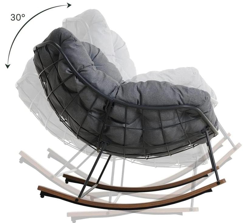 ·Ultimate Comfort: The rocking egg chair features a comfy egg-shaped frame with a soft, thick padded cushion, providing a cloud-like comfort. The 30-degree rocking angle enhances the relaxing experience.
