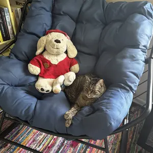 I love this chair. I will be buying a second. My 20lb old man cat is obsessed also. He asked me to take these pictures for the review. Assembly was so easy and it’s soooo sturdy. My 240lb 6’5” husband loves rocking in it. It’s for real a good buy.