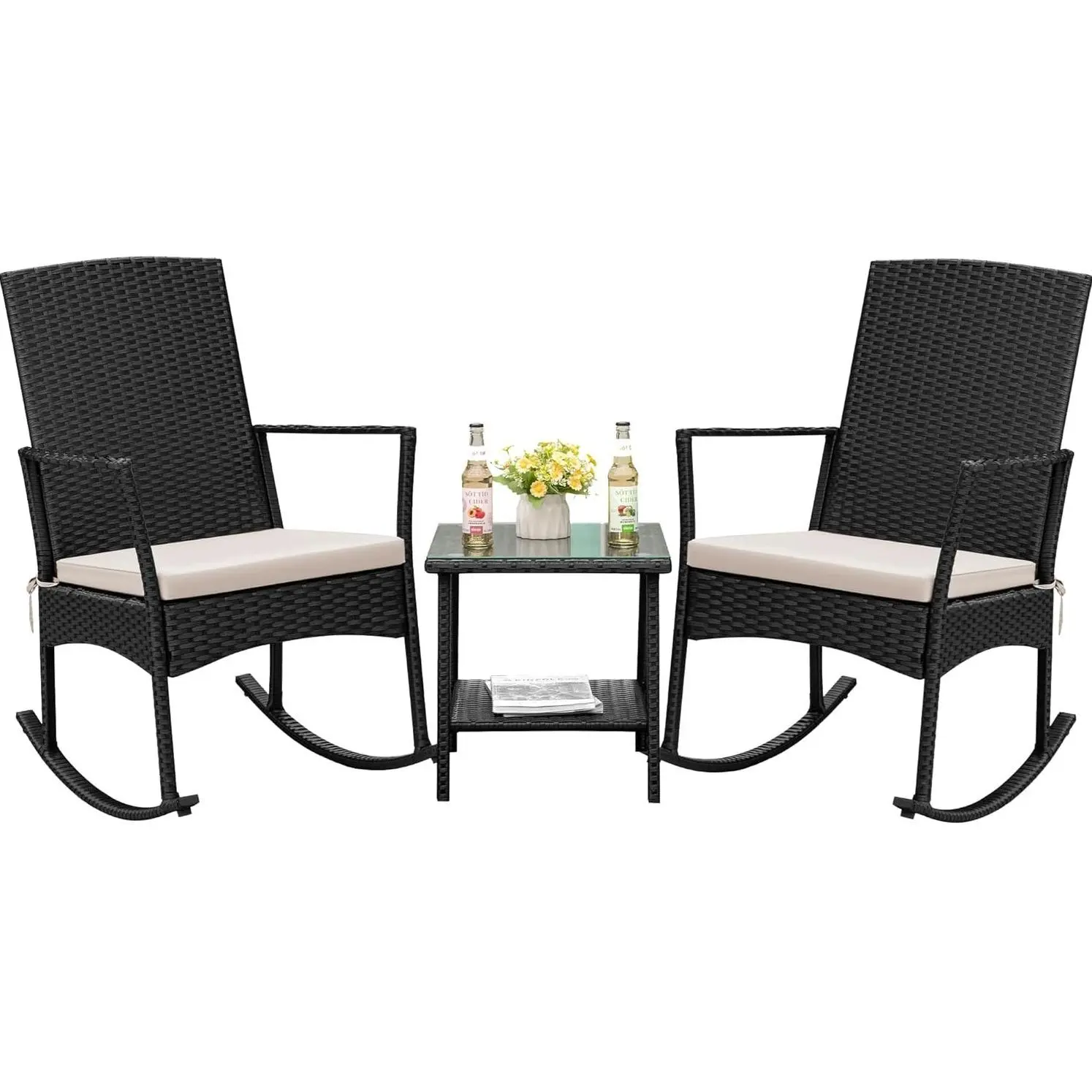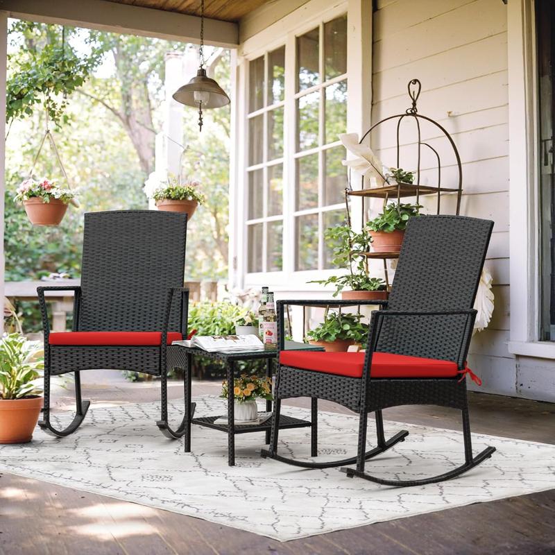 ·- Premium Material - Outdoor rocking chair is made of premium PE rattan & strong steel, which provides better stability for 300lbs and features weather resistant.Suitable for long time outdoor using.