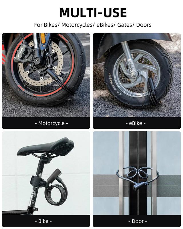 Extended 3.4 ft Cable: Long enough to secure bikes, scooters, gates, and fences for versatile use.