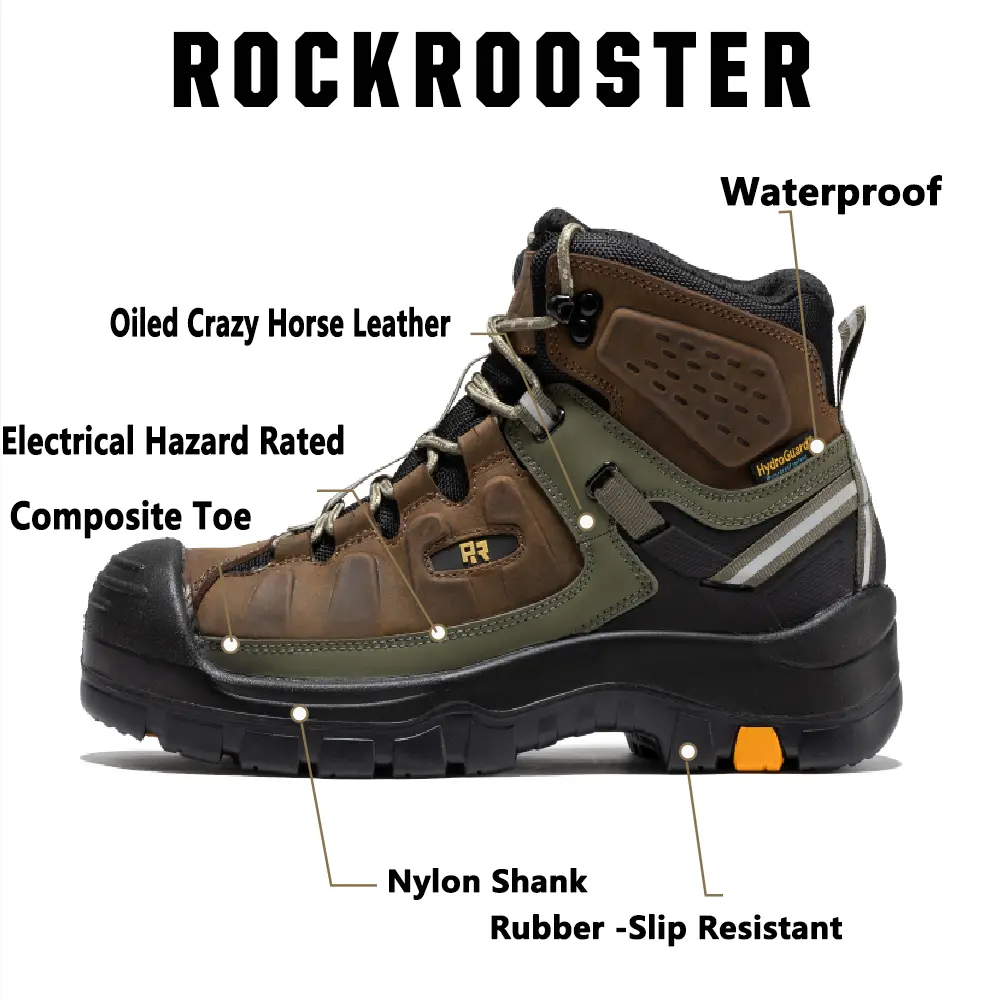 🌳 ROCKROOSTER Waterproof Composite Toe Work Boots for Men