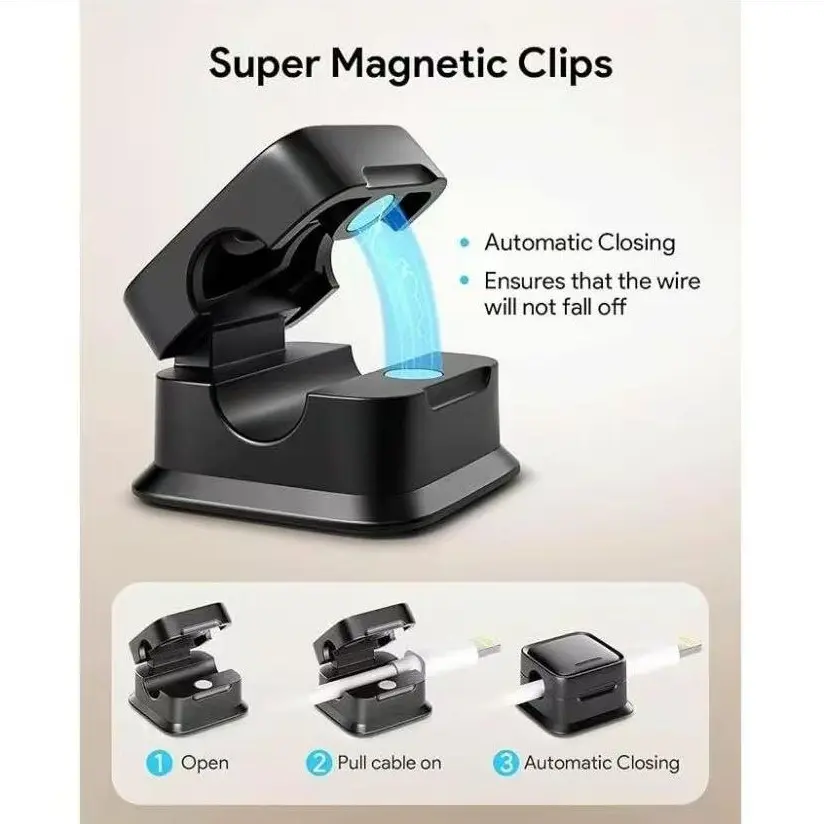 ·Magnetic Clamp Design: The unique magnetic opening and closing cable clip design allows you to place and remove cables with only one hand. Unlike other cord holders on the market, Joyroom cable organizer uses a sophisticated 60° rotating shaft and magnetic locking cord design, helping you easily snatch a cord off or easily add a cord easily