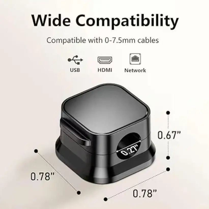 ·7.5 mm Perfect Cable Slot Diameter: Diameter of 0.3 inches (7.5 mm) can hold most cables, such as phone charging cables, USB cords, HDMI thick cables, computer power cords, etc. Besides that, the slot diameter of 7.5 mm can perfectly hold a charging head as small as the iPhone original silicone charging cable without falling off, and the held cable can be pulled out smoothly for use