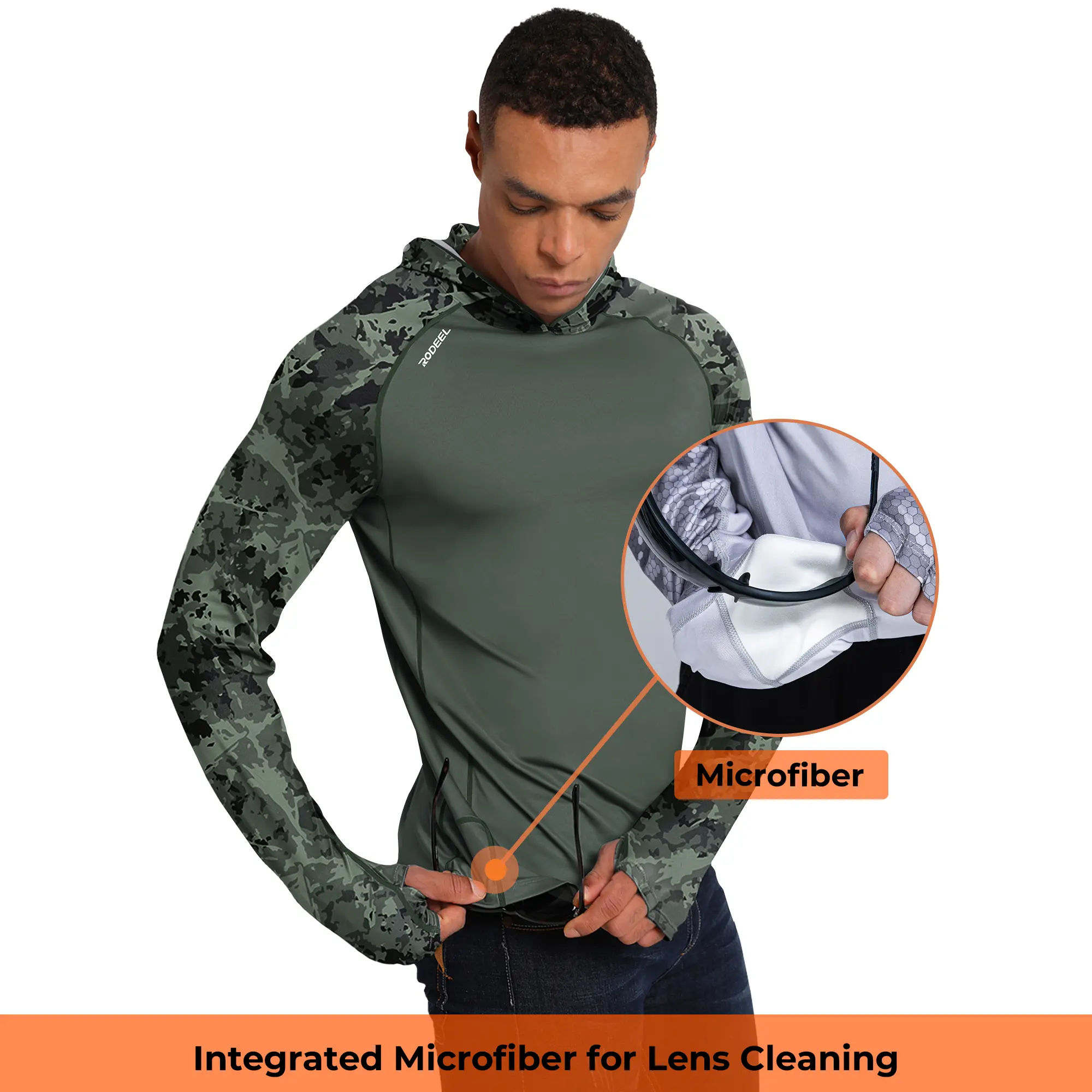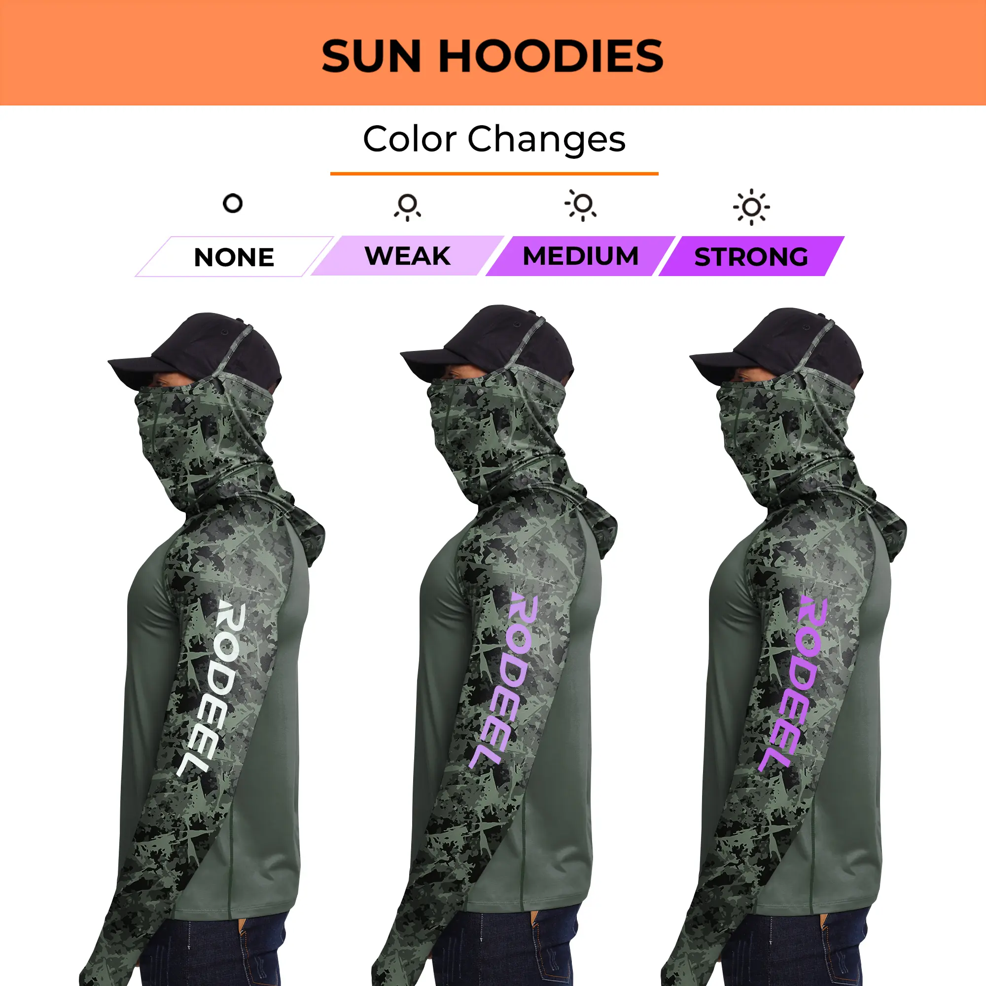🛡️ RODEEL 934 Sun Hoodie Shirt w/ UV Detection Mask Neck Gaiter Thumbhole. Lab-certified UPF 100+ protection blocks 99% of harmful UV rays. Stay safe under the sun! Built-in hood and face gaiter offer full coverage for head, neck, face, and hands. Designed for high-speed adventures, it keeps everything secure at top speeds.