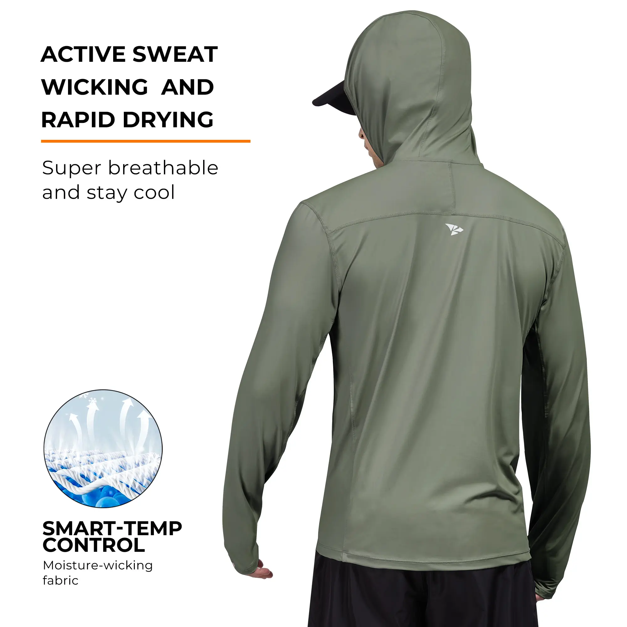 5. RODEEL 937 Sun Hoodie Shirts Men UPF 50+ UV Protection Long Sleeve Lightweight Quick Dry Moisture Wicking Breathable Cooling Activewear for Outdoor Sport Gym Hiking Camping Fishing Boating Construction Landscaping Gardening, Holiday Gift