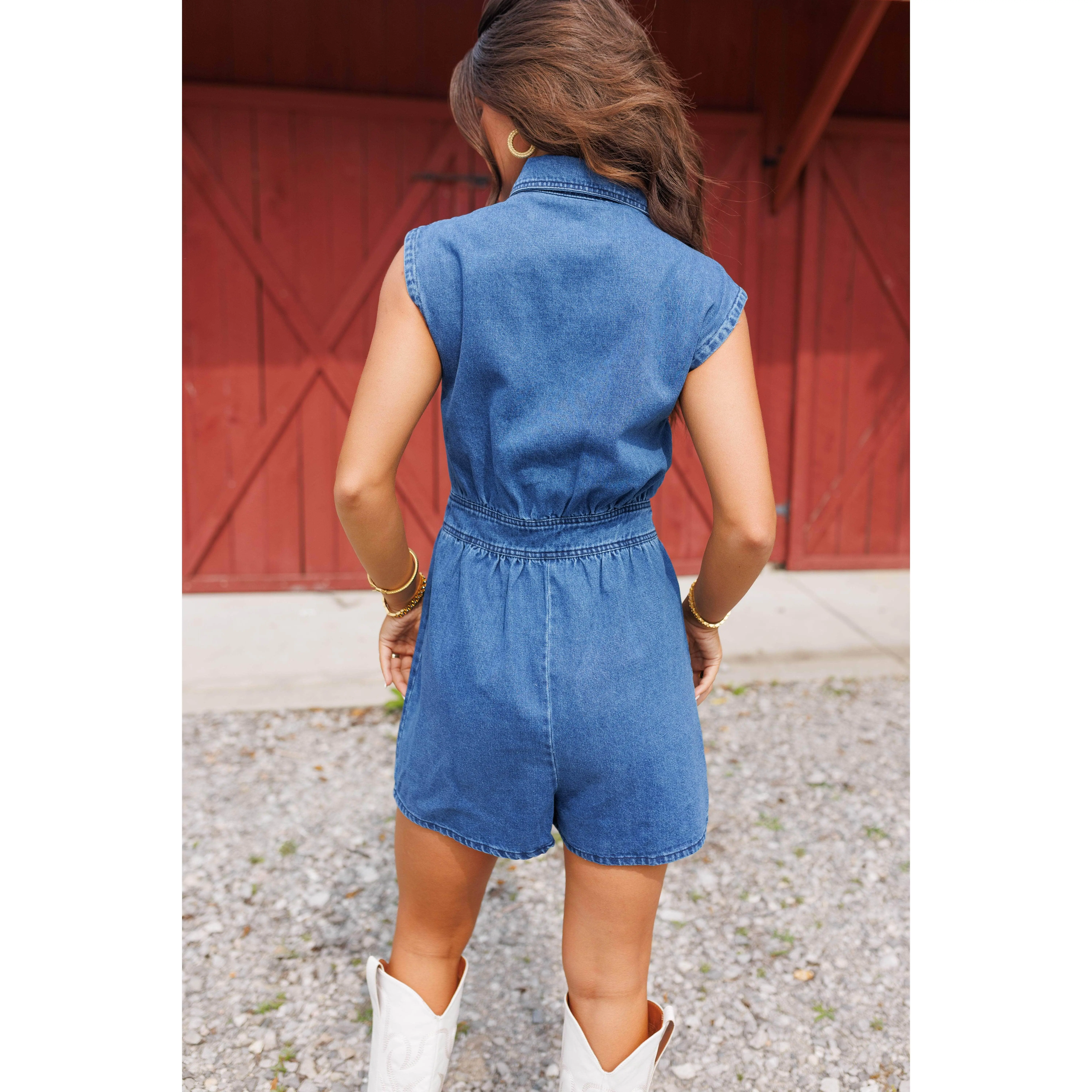 This romper brings structure and ease together in one timeless piece. Designed with a collared neckline, button-down front, and front chest pockets, it has just the right amount of utility-inspired detail. Pleats on the shorts give it a relaxed, flattering shape — perfect for warm days when you want to look put-together without the effort.