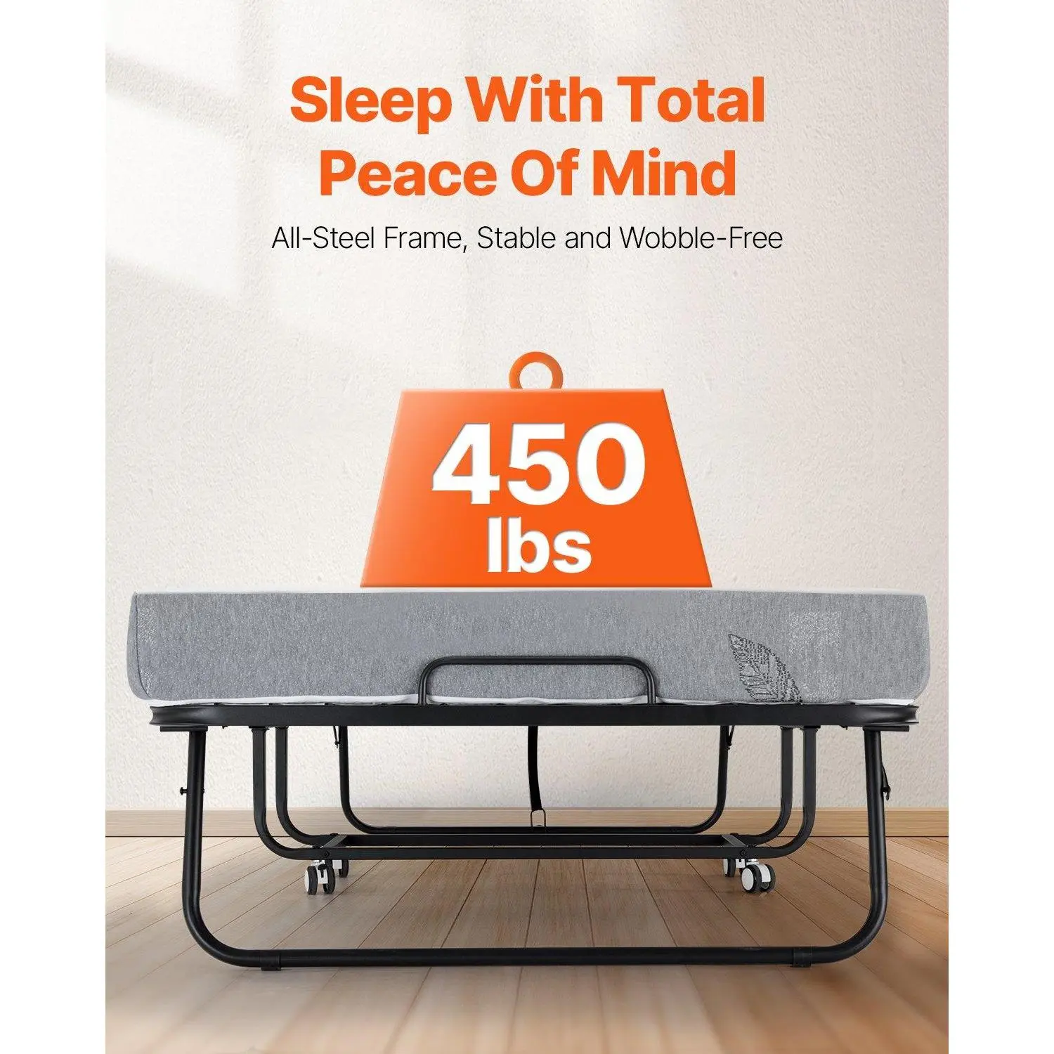 ·Support up to 450 lbs: Our foldaway bed has a thickened and reinforced steel frame and tightly connected metal hardware, ensuring a solid and durable structure. With a strong 450 lbs weight capacity, it provides reliable support for everyone in the family. It doesn’t wobble or lose shape, allowing for a steady and restful sleep.