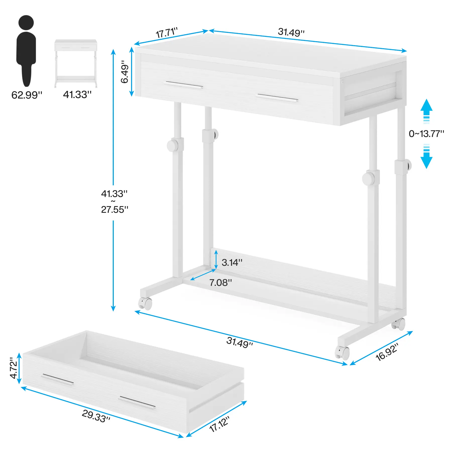 Tribesigns Small Mobile Rolling Standing Desk - Overbed Table, Teacher Podium with Wheels, Adjustable Work Table, Rolling Desk Laptop Computer Cart for Home, Office, Classroom, Space-Saving Adjustable Tables & Desks
