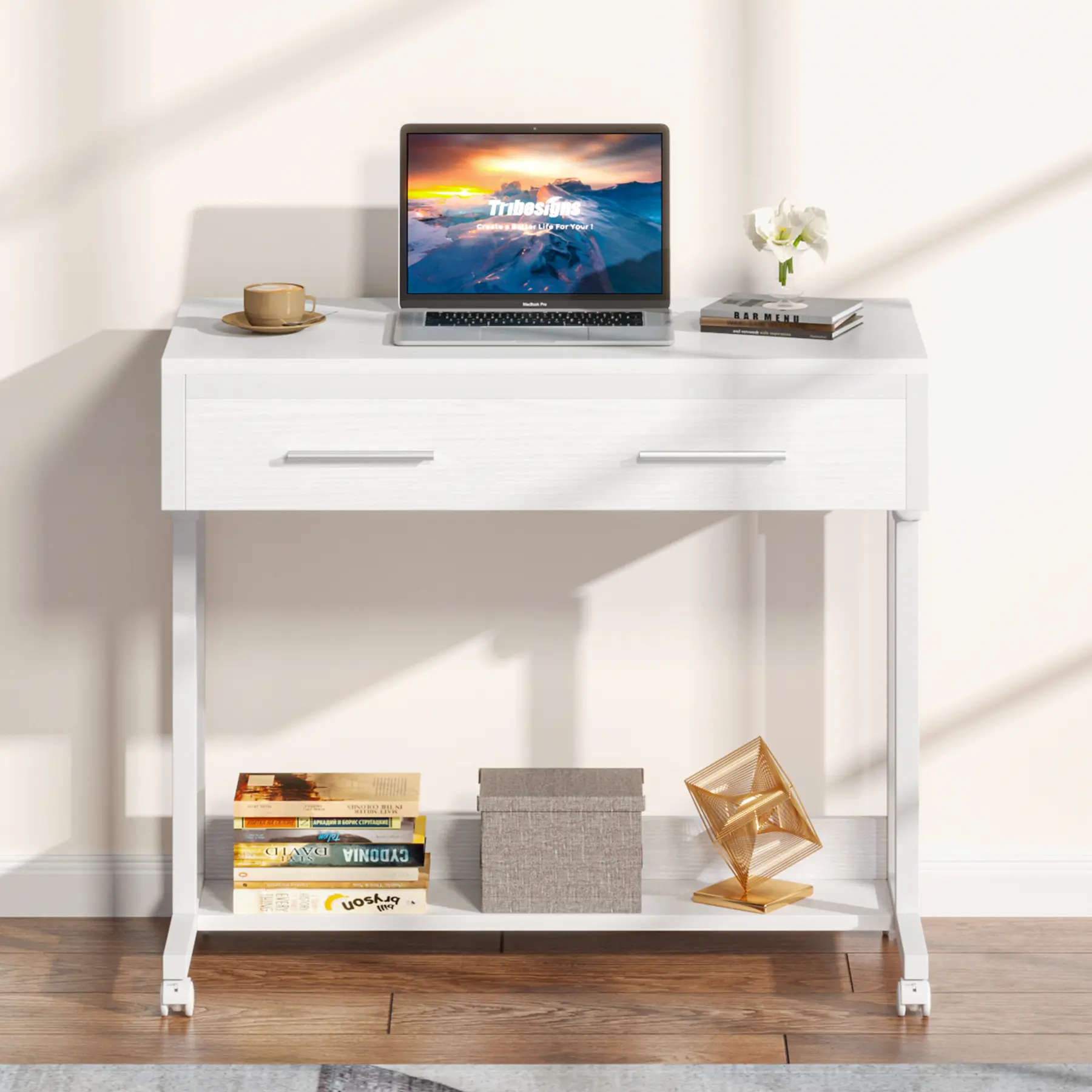 Tribesigns Small Mobile Rolling Standing Desk - Overbed Table, Teacher Podium with Wheels, Adjustable Work Table, Rolling Desk Laptop Computer Cart for Home, Office, Classroom, Space-Saving  Adjustable Tables & Desks