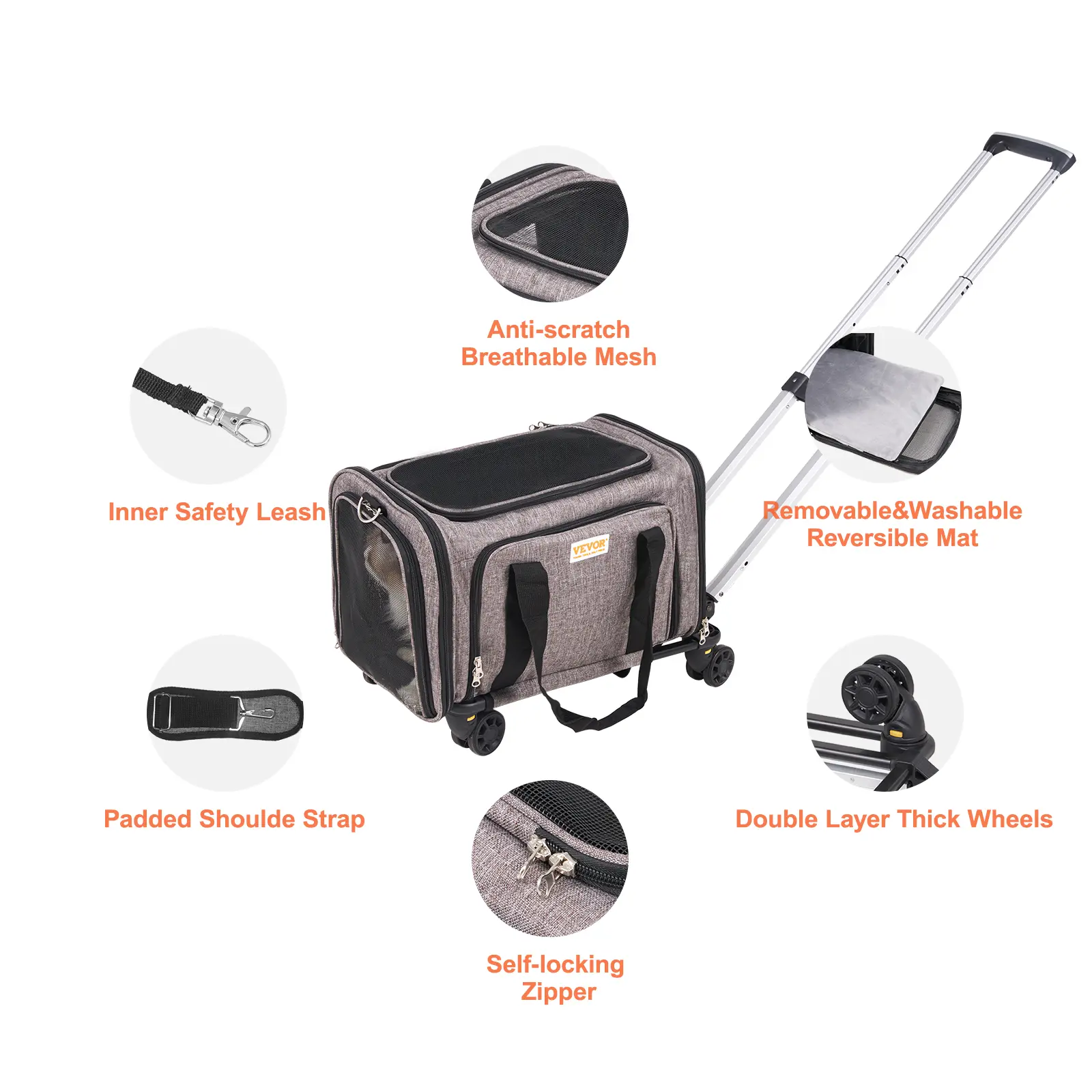 • User-friendly Details: Enjoy versatile use with multiple carrying options: hand-held, wear on your back or shoulder, or pull with the 3-level adjustable aluminum alloy pull rod. The self-locking zipper prevents your pet from escaping, while the detachable Velcro offers easy carrying and storage.