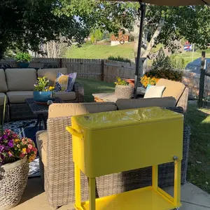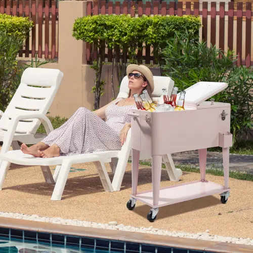 ·【EASY CLEANING】The front of rolling ice chest has bottle-cap catcher and bottle opener. At the back, there is a drain plug to remove excess water. And smooth powder-coated steel exterior is easy and convenient to clean and care after parties