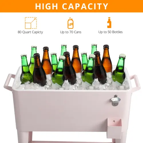 ·【LARGE CAPACITY】With 80 quarts (20 gallons) capacity, the rooling cooler can hold up 80+ aluminum cans or 50+ bottles. Nice to store beer, beverage and juicy