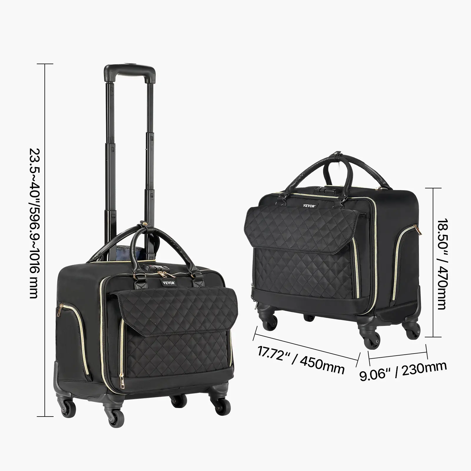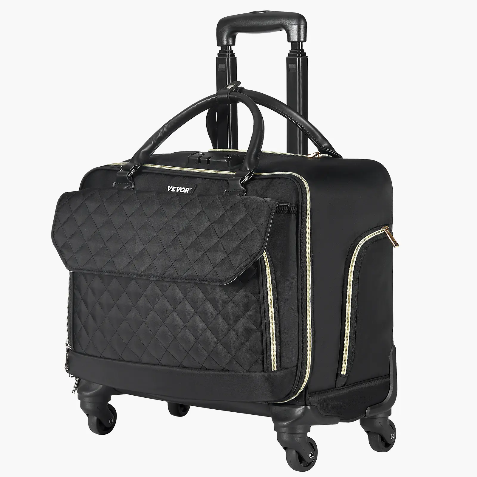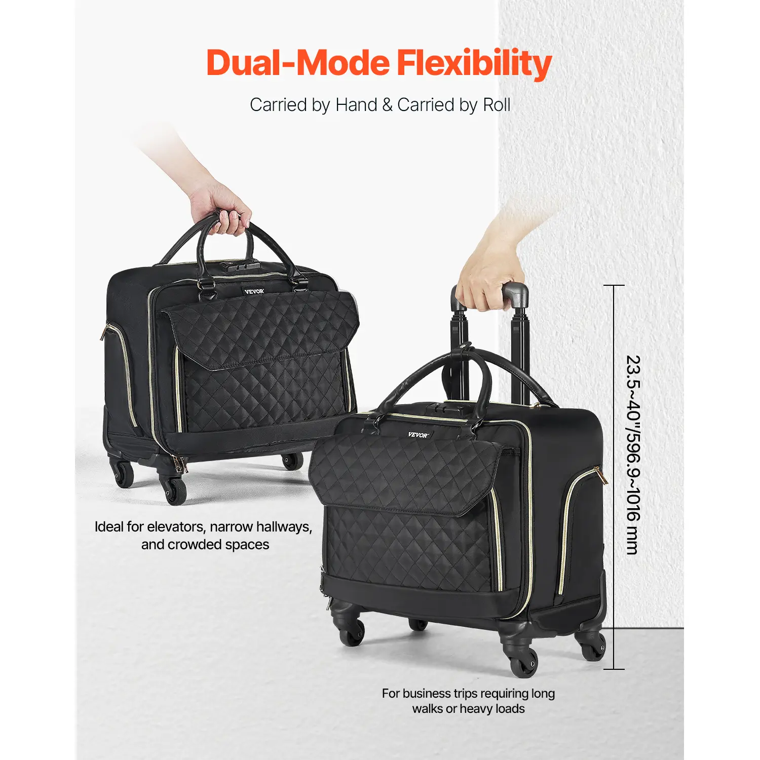 • Adjustable Comfortable Handle: Equipped with a telescopic handle featuring 4 adjustable heights, this rolling office bag adapts effortlessly to your posture. Whether you're standing, walking, or sitting, it supplies maximum comfort and control