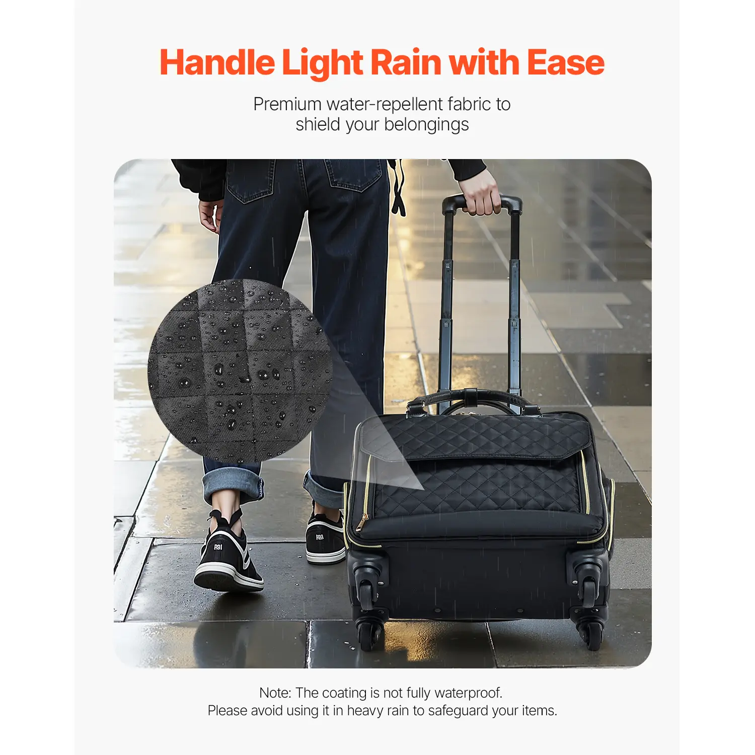 • Durable Fabric, Long-Lasting Use: Crafted from premium 1680D Oxford fabric, this rolling computer bag is tear-resistant and wear-resistant for long-lasting use. The water-repellent coating keeps laptops and documents from unexpected rain, delivering added peace of mind