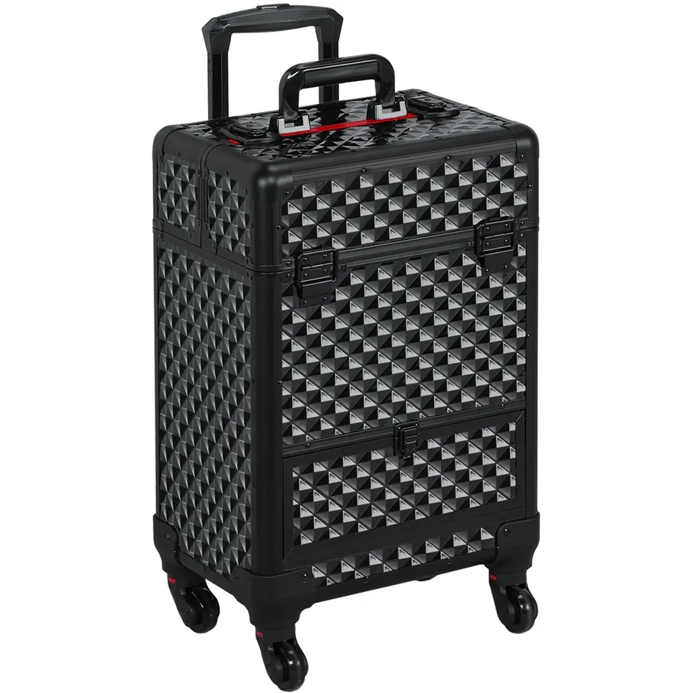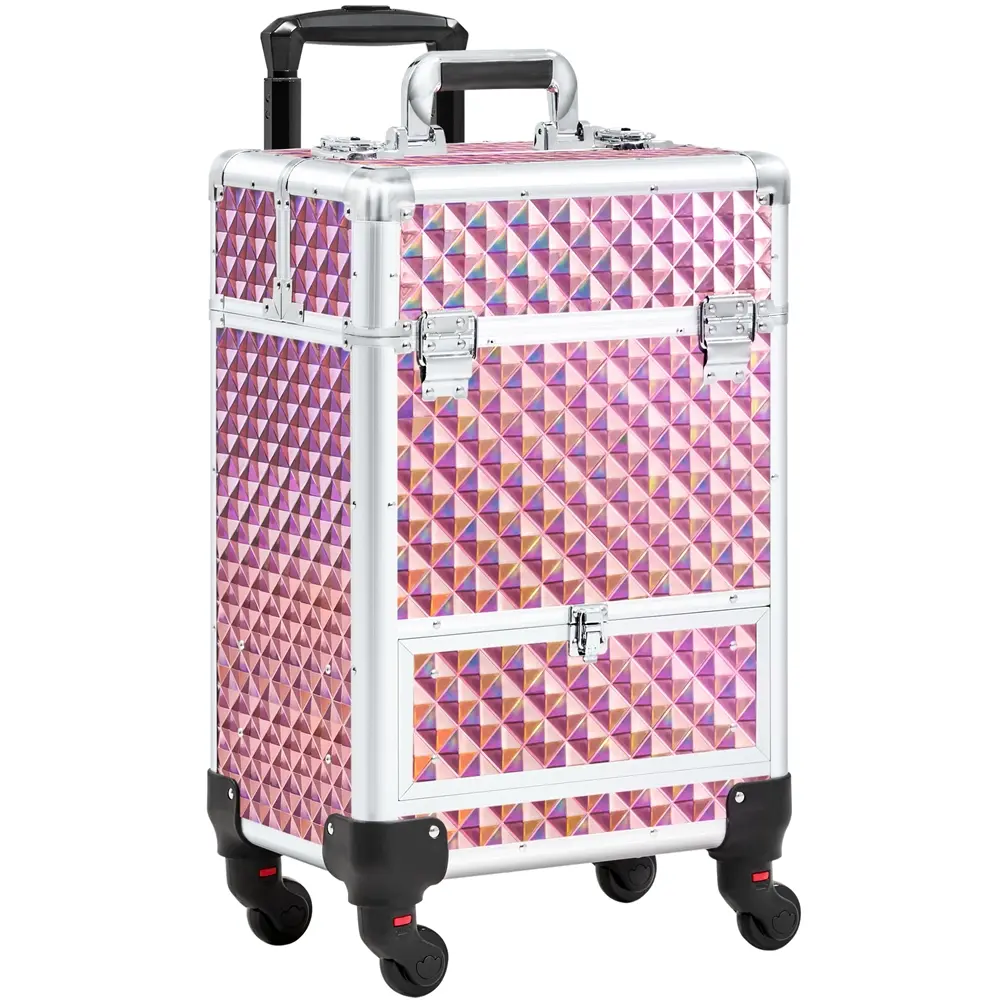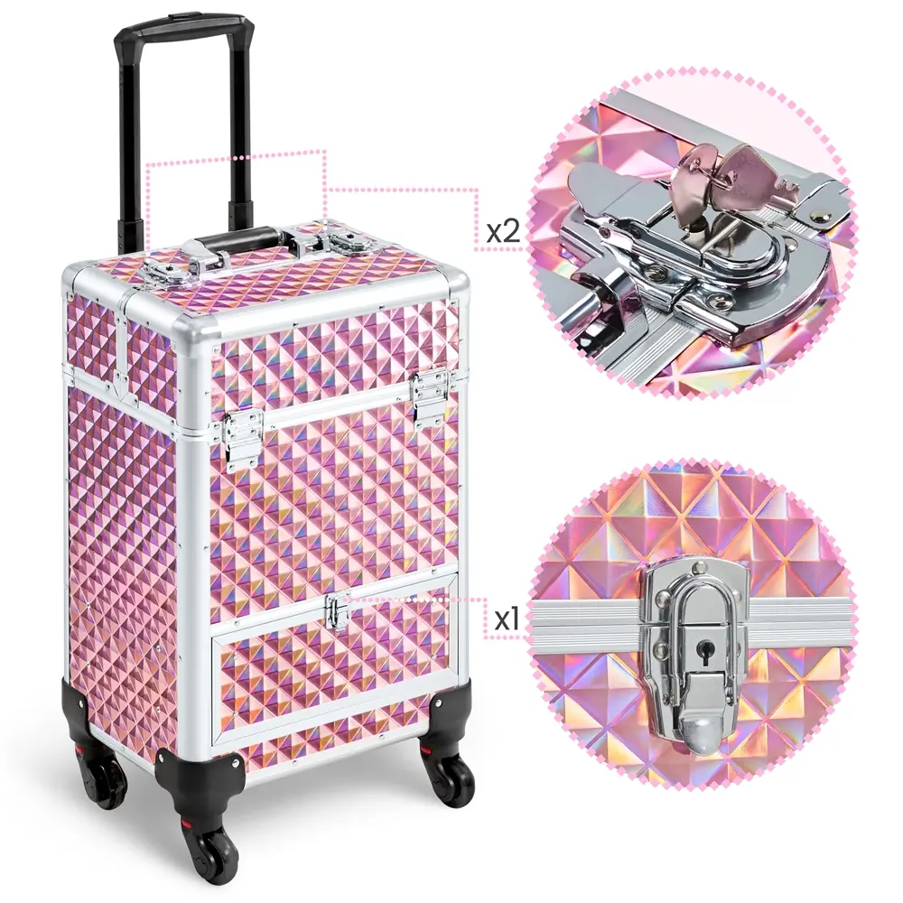 This rolling makeup case is specifically designed to keep your cosmetics and makeup tools neat, organized, easily accessible, and, most importantly, effortless carrying. You can enjoy an incredibly smooth operation with four slide-out trays with aluminum sliding tracks. The upper section has a large storage compartment, ideal for storing bottles and beauty devices. The bottom drawer is designed to keep your often-used items right at hand and easy to fetch. This rolling cosmetic organizer comes with detachable all-directional rolling wheels, making it convenient to move around. Whether you're getting ready in your bedroom or need to take your makeup on the go, this organizer has got you covered.