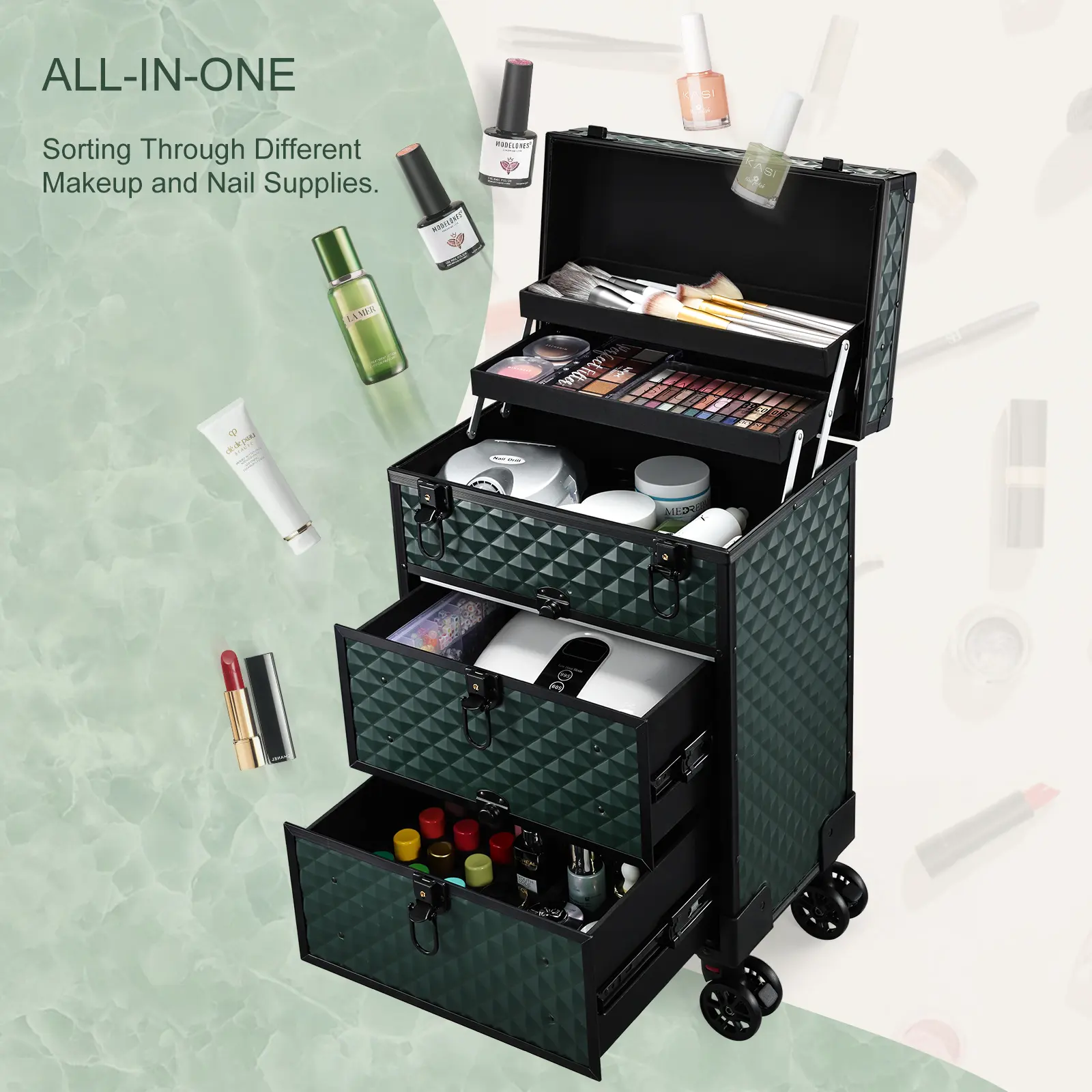 Style 2: Dark Green Rolling Makeup Case with 2 Trays