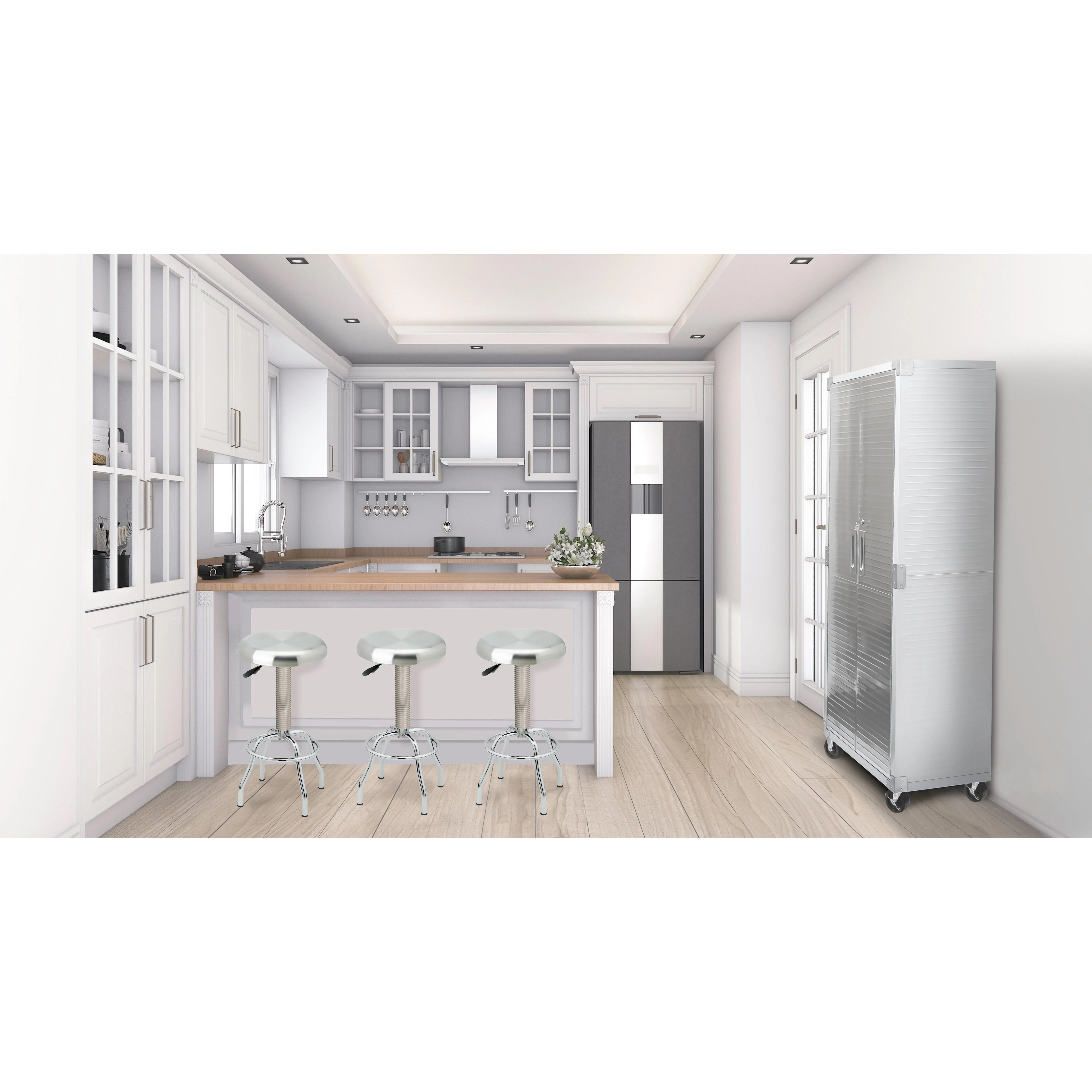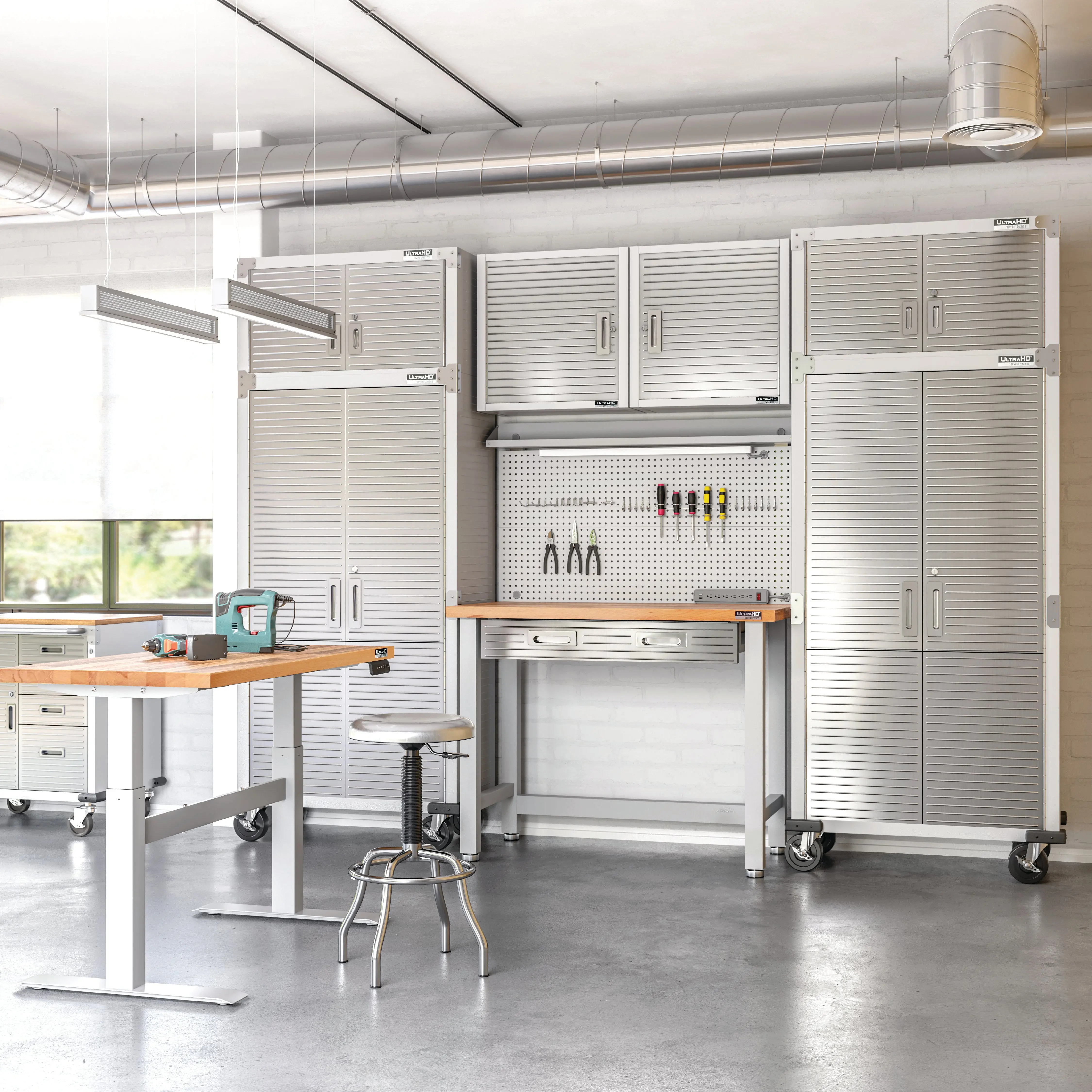 ·Four 5" heavy-duty wheels (2 locking)Extra wheels available for purchase hereLeveling feet available for purchase here