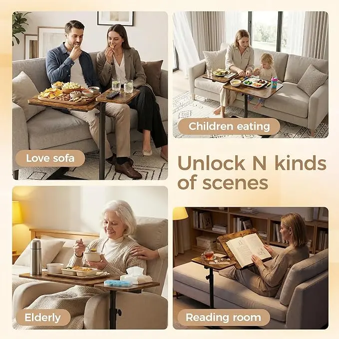 ·INDEPENDENT DUAL-SURFACE VERSATILITY: Both the main and side tabletops adjust height and angle independently. Perfect as a laptop stand for bed, a rolling medical tray, or a stable couch side table. Whether you are working, dining, or recovering, the split-top design keeps your mouse or coffee level while your screen tilts to your eye line.