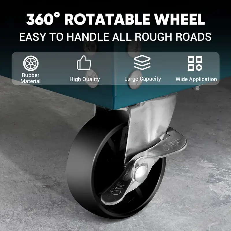 【Easy to Move】Tool cart with Drawers is equipped with 2 universal brake wheels, you can transport heavy objects without extra help, safe and flexible; you can adjust the forward direction of tool cart by rotating 360°.