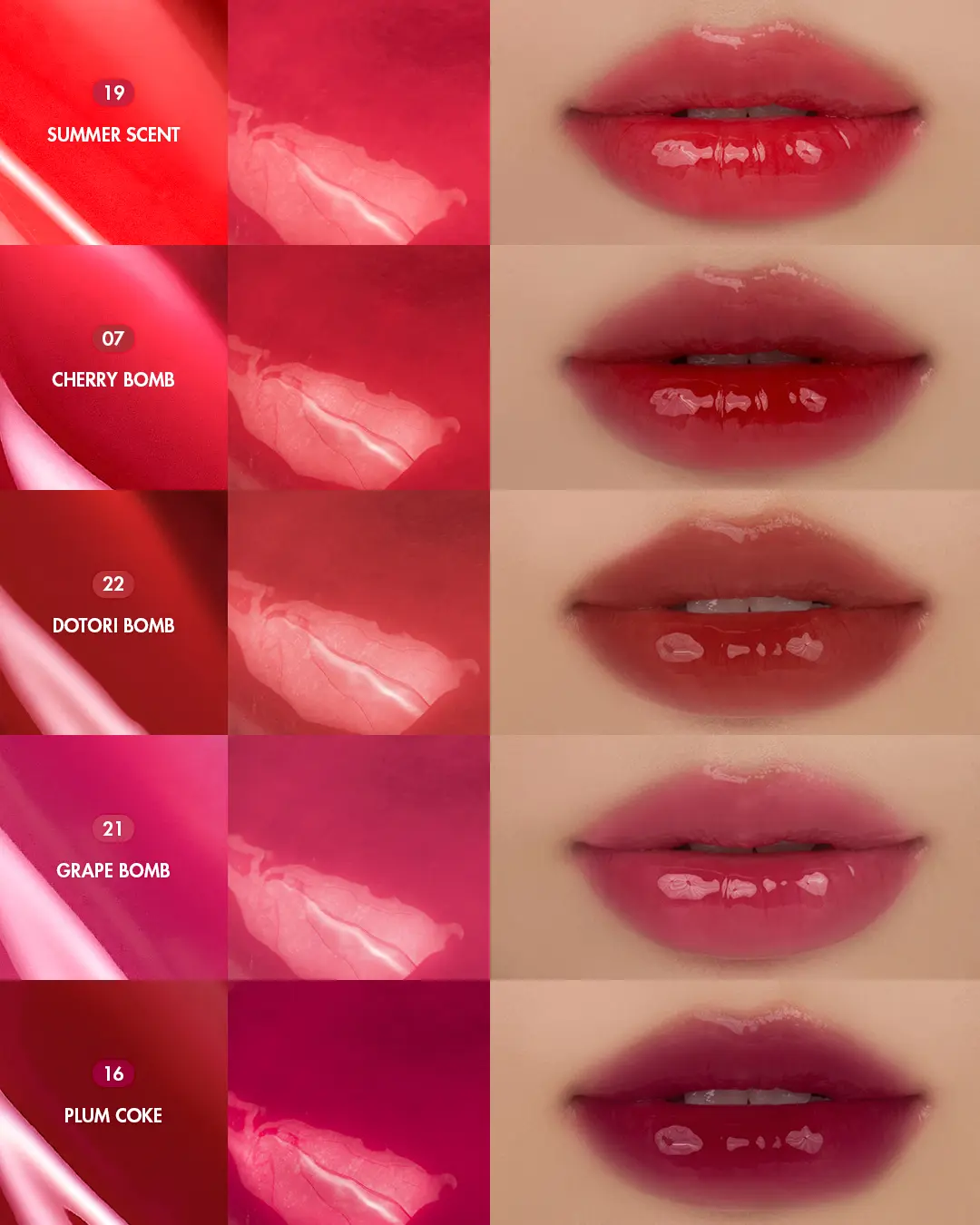 | Ingredients | Water,Octyldodecanol,Alcohol Denat.,Polysorbate 60,Trimethylsiloxyphenyl Dimethicone,Ethylcellulose,Behenyl Alcohol,Pentylene Glycol,Phytosteryl Isostearyl Dimer Dilinoleate,Acrylates Copolymer,Sodium Acrylate/Sodium Acryloyldimethyl Taurate Copolymer,Sorbitan Stearate,Silica,Isohexadecane,Phenoxyethanol,Polyglyceryl-2 Triisostearate,Diisostearyl Malate,Glyceryl Stearate,PEG-100 Stearate,Polysorbate 80,Sorbitan Oleate,Polyglyceryl-2 Diisostearate,Fragrance(Parfum),Trisodium Ethylenediamine Disuccinate,Flavor,Ethylhexylglycerin,Raspberry Seed Oil/Tocopheryl Succinate Aminopropanediol Esters,Prunus Domestica Seed Extract,Mangifera Indica (Mango) Seed Butter,Butylene Glycol,1,2-Hexanediol,Dimethylsilanol Hyaluronate,Hydrolyzed Hyaluronic Acid,Hydrolyzed Sodium Hyaluronate,Sodium Hyaluronate,Hyaluronic Acid,Potassium Hyaluronate,Sodium Hyaluronate Crosspolymer,Hydroxypropyltrimonium Hyaluronate,Sodium Hyaluronate Dimethylsilanol,Sodium Acetylated Hyaluronate,Iron Oxides (CI 77491),Titanium Dioxide (CI 77891),Iron Oxides (CI 77492),Red 7 Lake (CI 15850),Iron Oxides (CI 77499),Red 33 (CI 17200),Yellow 6 (CI 15985),Red 28 (CI 45410),Blue 1 (CI 42090),Benzyl Alcohol,Linalool |