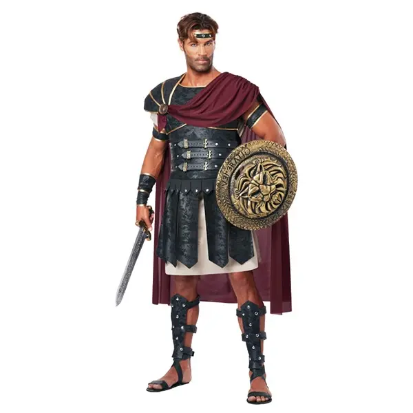 Enter the ring in this Roman Gladiator Costume! Wear the ancient armor of the most brutal group of fighters since the Spartans! (And yes, among other exotic peoples, Spartans fought as gladiators.) Which tools will you choose? A net and spear (difficult to work but deadly for catching enemies by surprise), dual swords (flashy and full of offense but hard to block javelins!), or will you pick up the age-old classic pairing of the sword and shield? This costume comes with a pullover tunic, body armor that attaches with Hook and Loop fastener, faux suede armbands, a matching headband, foam shin guards, as well as a molded plastic medallion. Add some Roman-style sandals to complete the look and let the crowd go wild with the entertainment you provide! We'd recommend just looking really good in this armor instead of actually fighting since it's not quite as sturdy as what the real deal was! But hey, maybe looks will win the crowd, it's happened before!