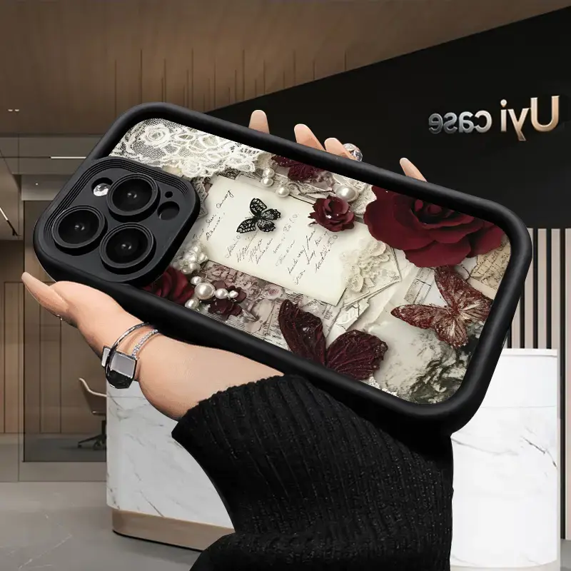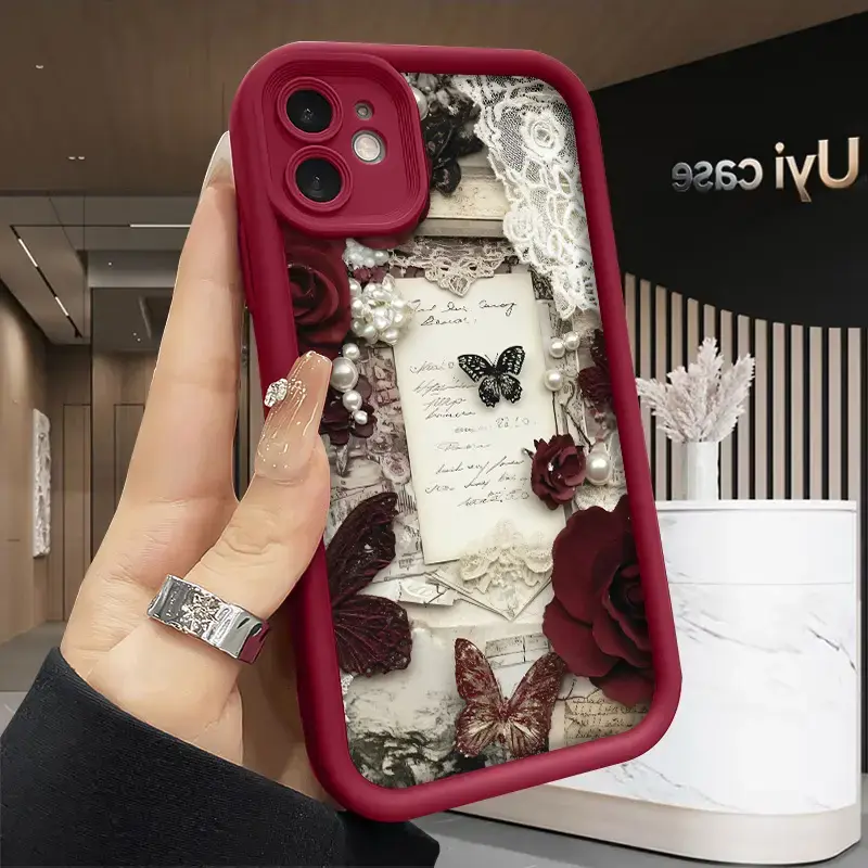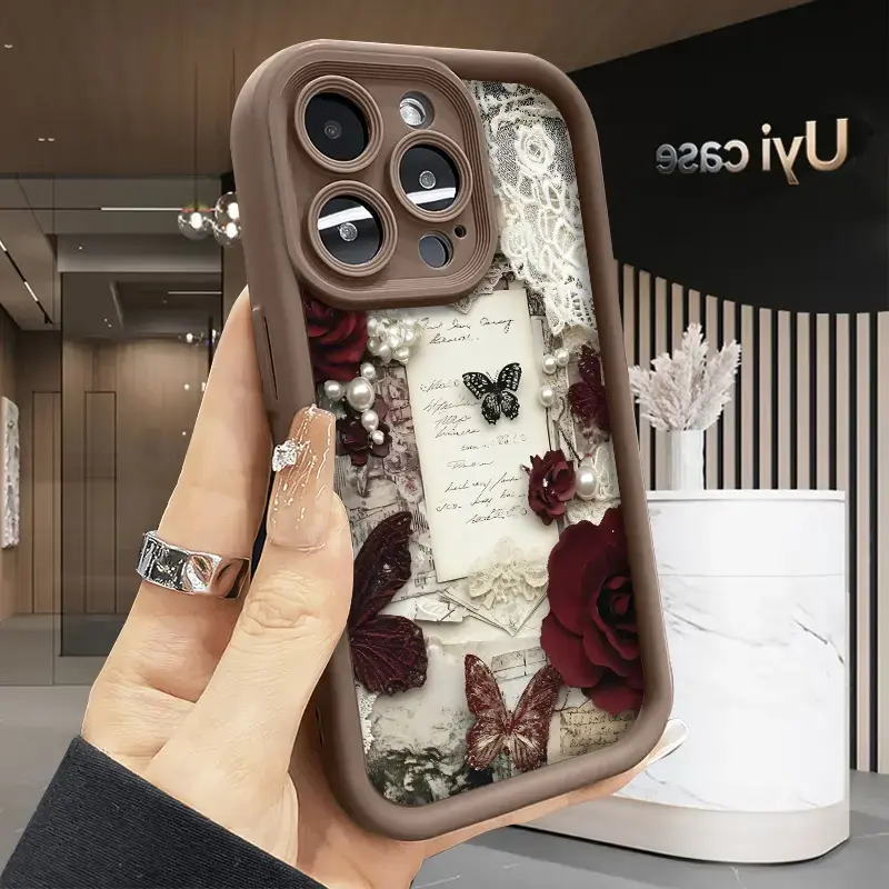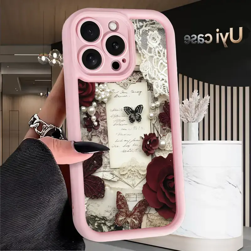 Romantic Rose Letters pattern phone case, compatible with iPhone 17 Pro Max, 16 Pro Max, 15 Pro, 14, 13, 12, and 11. Shockproof and drop-resistant phone case made of durable silicone material.