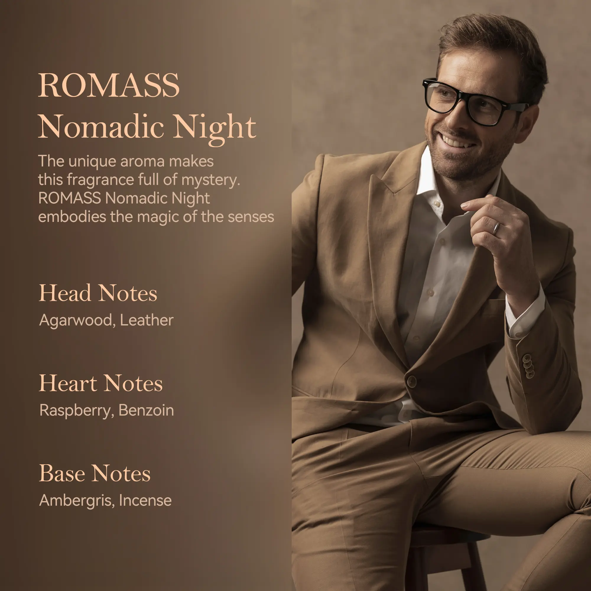 ·Base Notes: Spices, Smoky Woods