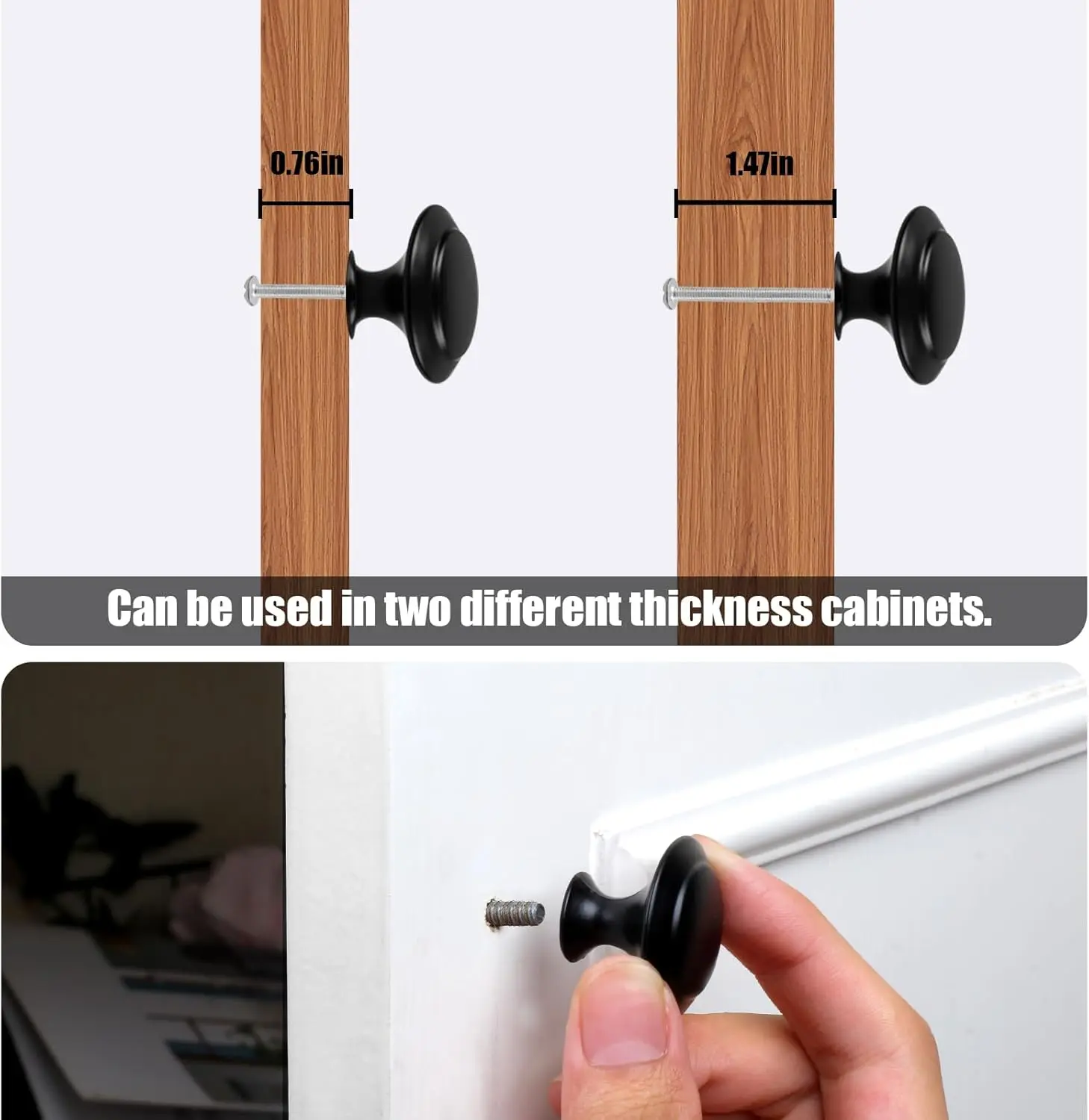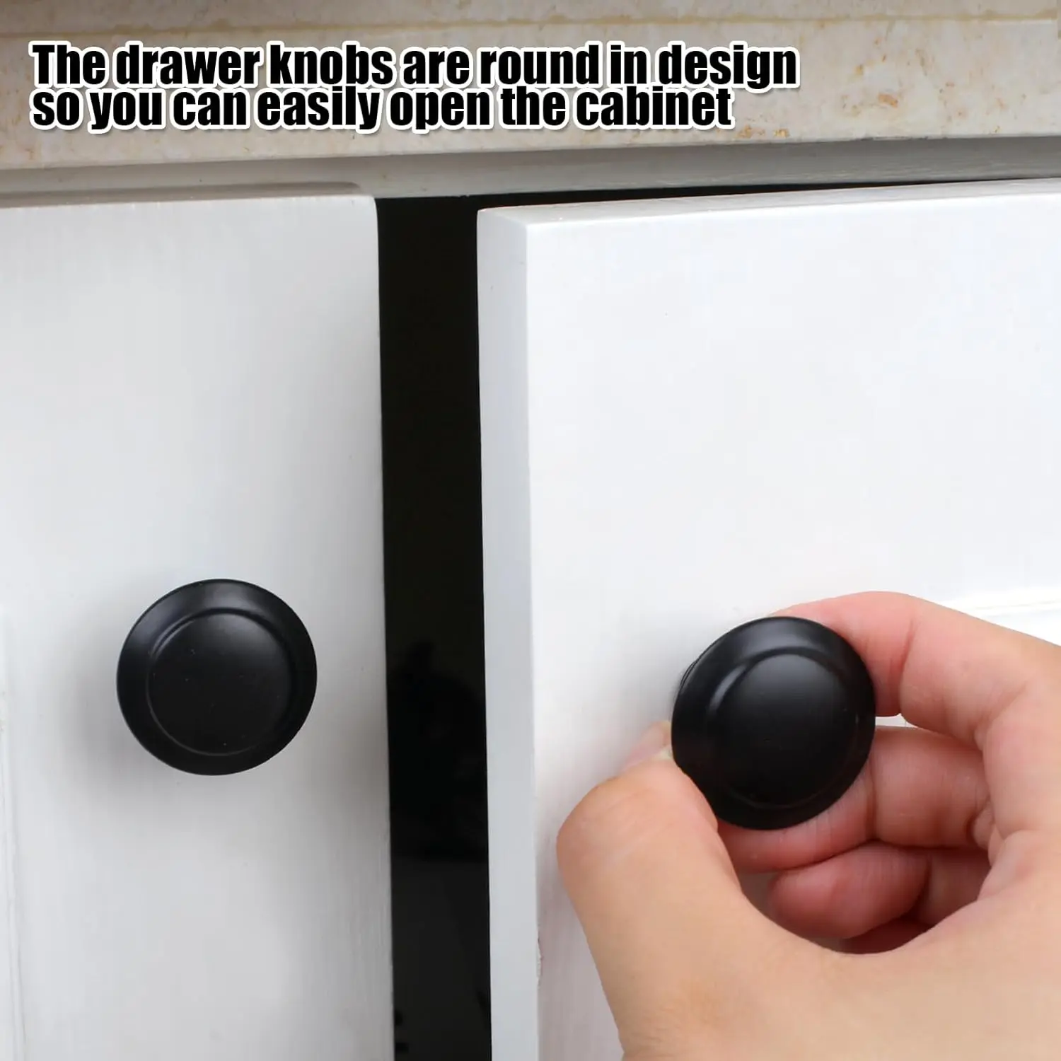 ·Round design: The drawer knobs are round in design. Matte black dresser knobs are beautiful in appearance, and delicate in touch. The middle of the cabinet knobs is a concave design for easy pushing and pulling.