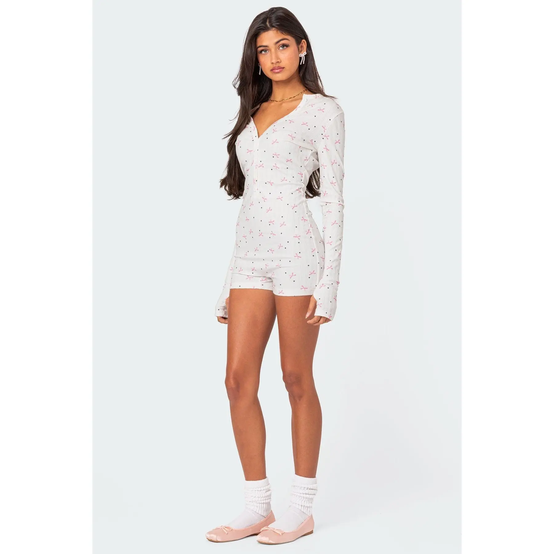 SO CUTE! 🥰 It’s very comfortable and the fit is very flattering. I will say it’s slightly see through but some skin toned underwear is a solution for that. The sleeves each have a hole for the thumb, which is cool. Overall, it’s such a cute pajama romper! 🤍