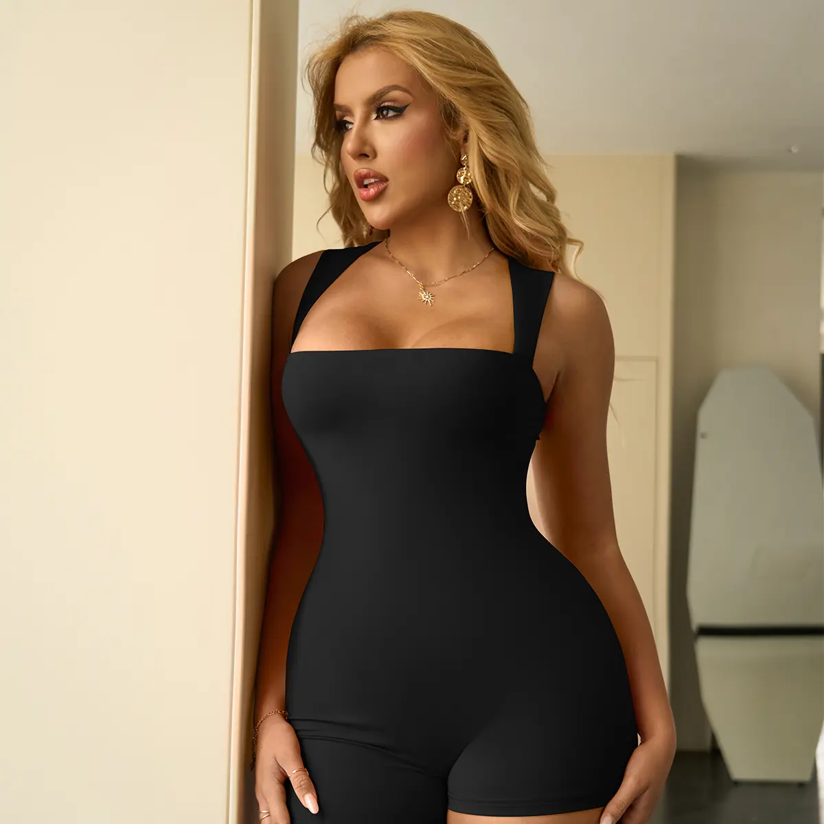 ·Square Neck Shorts Jumpsuit Rompers: jumpsuit short rompers ,square neck, sleeveless strappy padded tank tops rompers, sports outfits