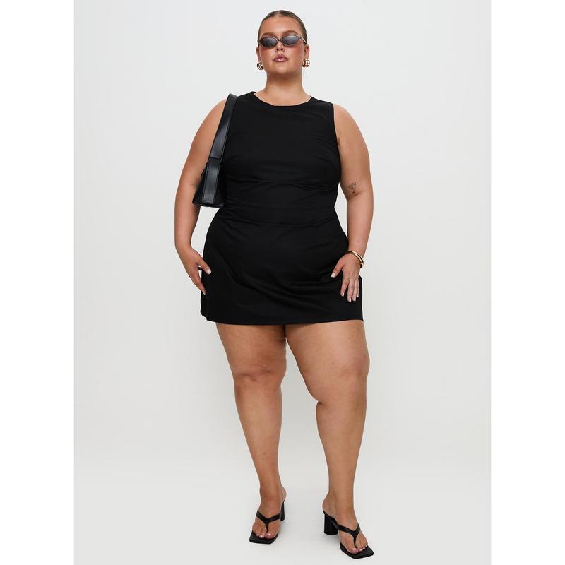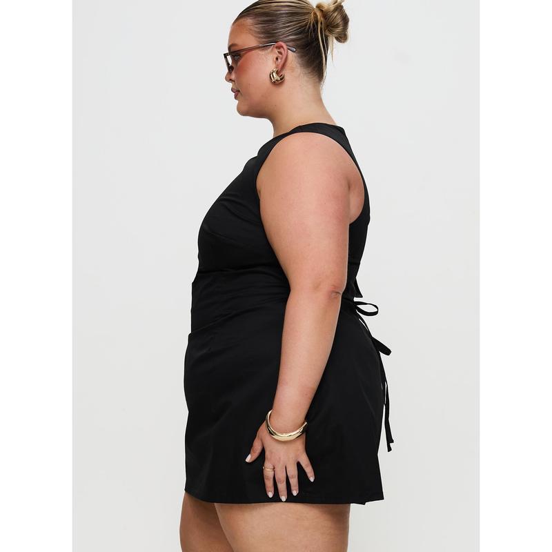 The tie in the back makes it so flattering #miniblackdress #minidress #blackdress #layering #layeringoutfits #falldealsforyou #fallfashion #falloutfits #tiktokshopcreatorpicks @Princess Polly #romper #yumikoromper