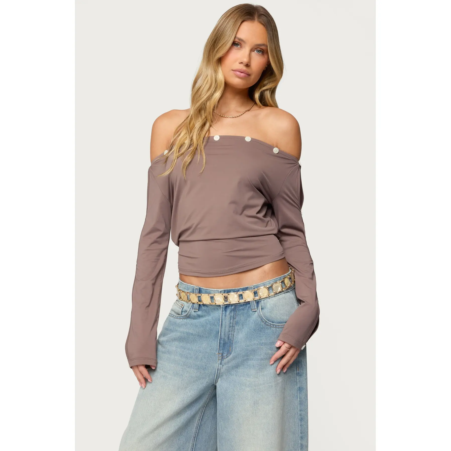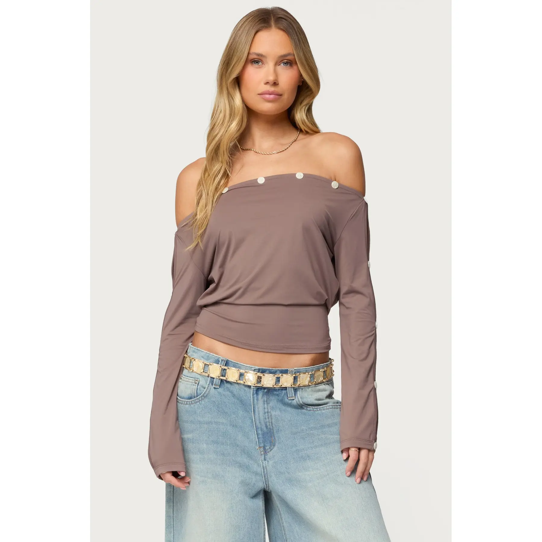 5. Ronee Off Shoulder Button Cutout Top