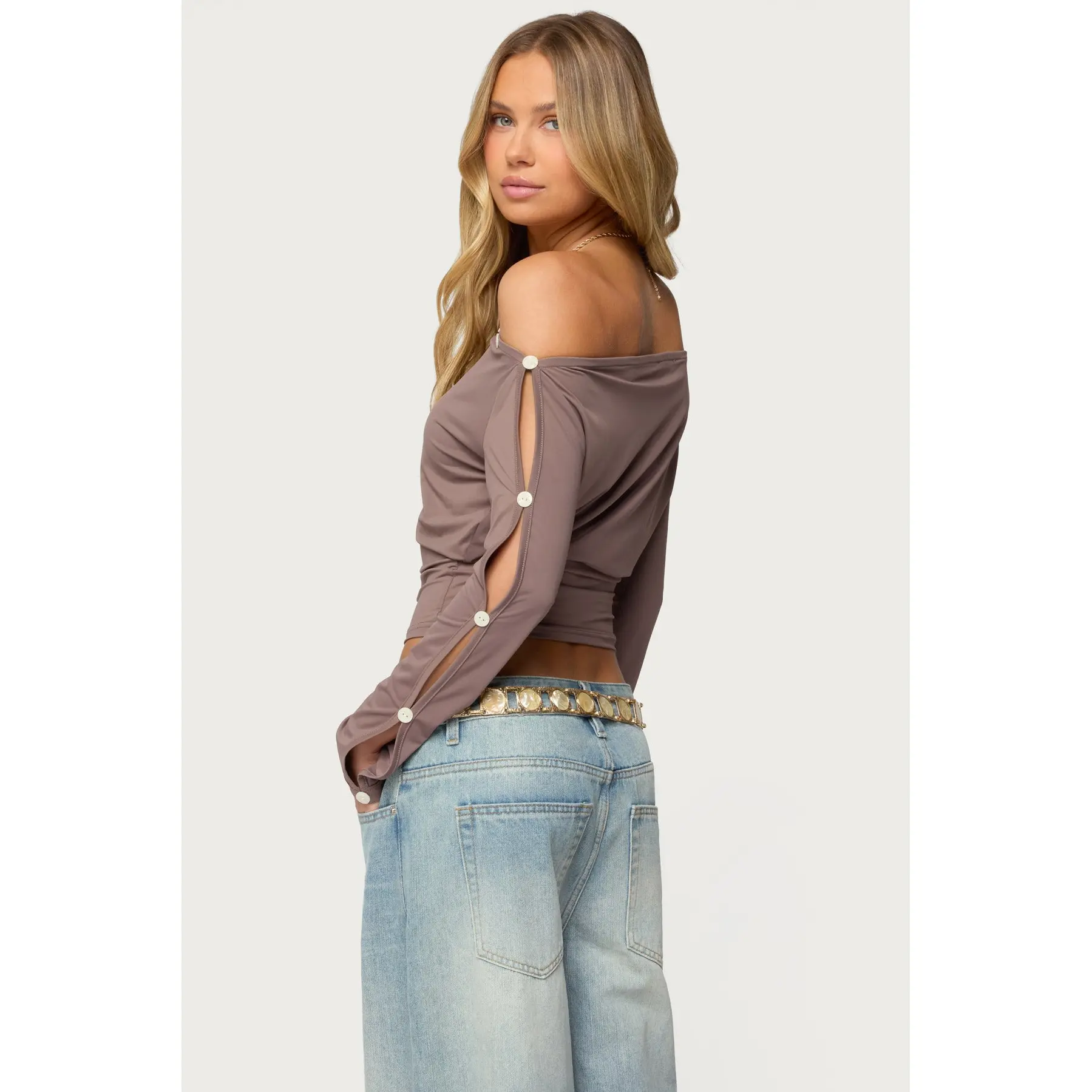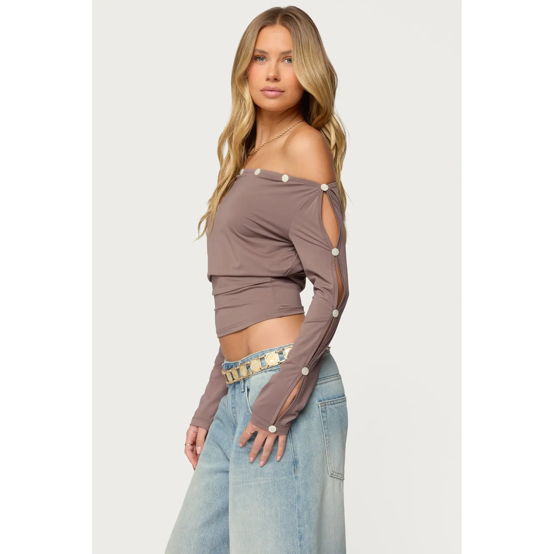 Ronee Off Shoulder Button Cutout Top