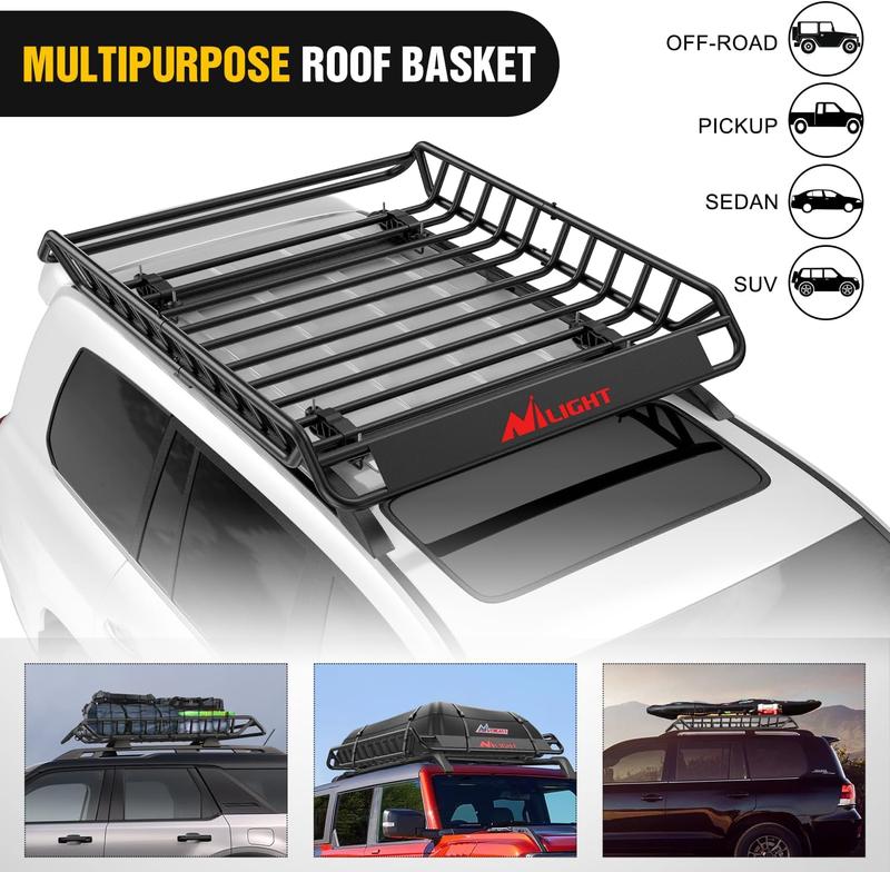 Nilight Universal Roof Rack Cargo Basket will work well with any vehicle