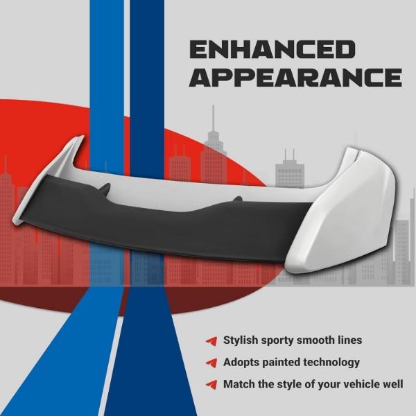 The roof spoiler is constructed of heavy duty ABS plastic for longer lasting drivability.