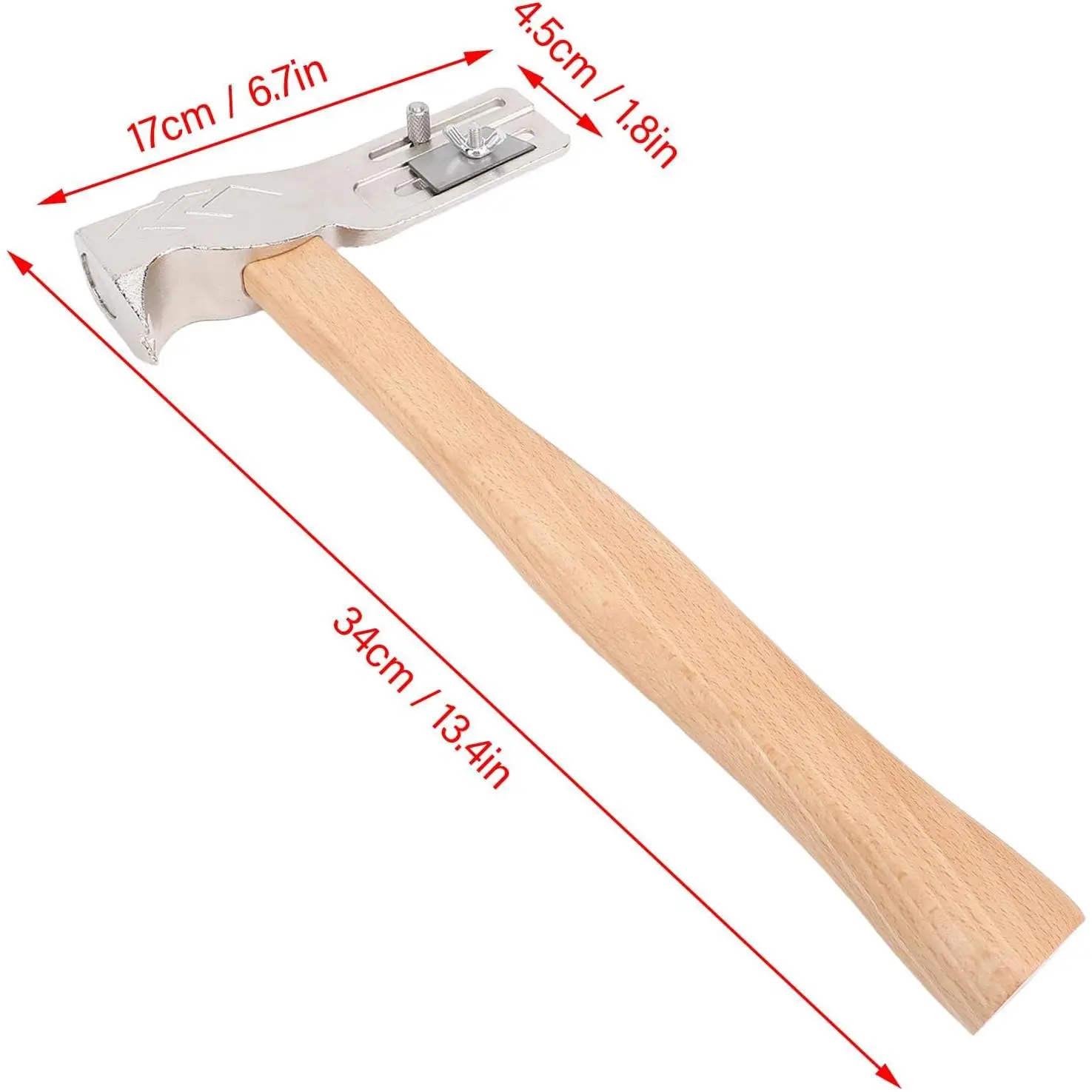 LIGHTWEIGHT AND CONVENIENT: The roofing hatchet is designed with lightweight construction, easy to use and suitable for roofing work, it ensures precise and efficient cutting for roofing professionals.NAIL PULLING AND STRIKING FUNCTION: The multifunctional roofing hatchet is suitable for easy and fast nail pulling, and it has higher stability and higher striking power, which saves more energy and allows you to finish the work efficiently.COMFORTABLE HANDLE: The roofing hammer is designed with a wooden handle for a comfortable grip and stability in use, creating a lightweight feel that fits the user's hand and ensures comfort and control.FLEXIBLE HAMMER Practical hammer design provides more hammering angle options for durability, functionality and long life, forged from a whole piece of carbon steel, sturdy and .MULTIPURPOSE: This hatchet hammer is used for a wide range of applications, suitable for uses such as roof repairs and construction work, ideal for installing shingles and other roofing materials.