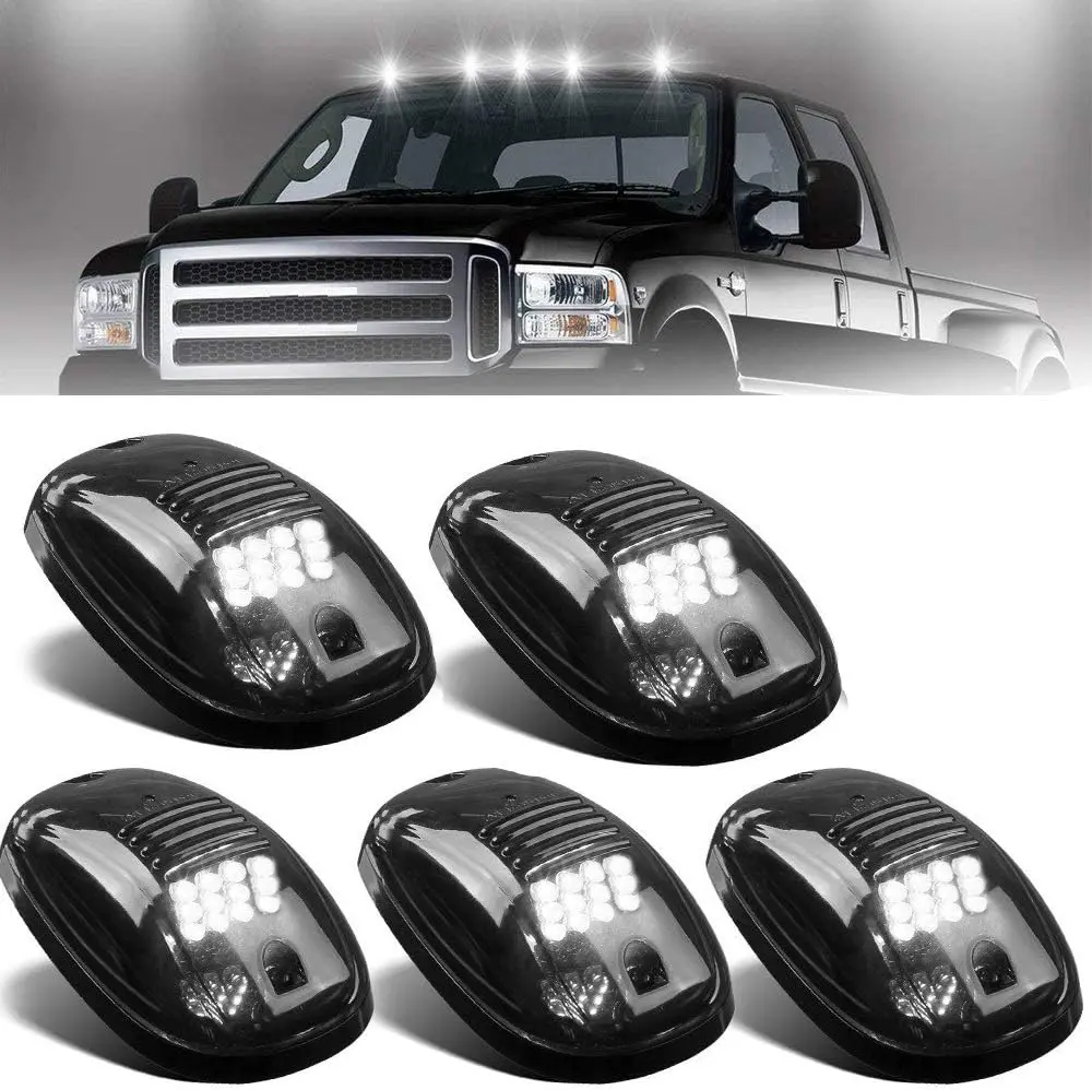 Introducing the Smoke Lens Rooftop Cab Clearance Light Kit, a practical solution for vehicle owners looking to enhance their vehicle's visibility and safety. This kit includes 5 white LED lights, designed to provide clear and bright illumination for your pickup truck, Ford, Dodge, Ram, GMC, Toyota, Vans, SUV, and POV vehicle.