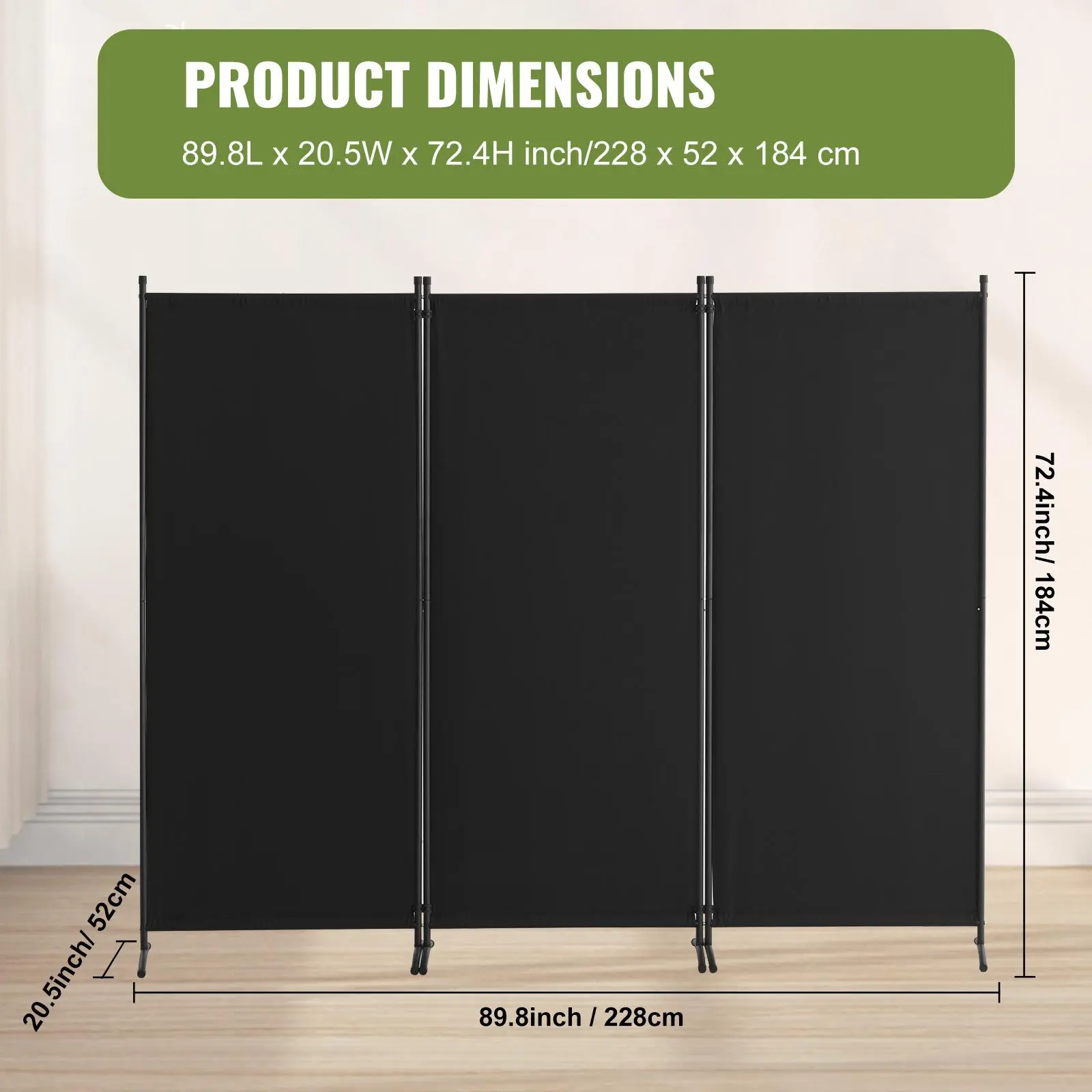 5. VEVOR Room Divider, 3 Panel Room Dividers and Folding Privacy Screens, Fabric Partition Room Dividers for Office, Bedroom, Dining Room, Study, Freestanding, Black
