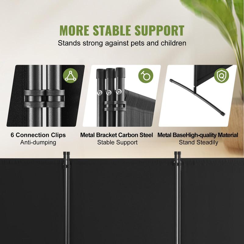 • Sturdy and Reliable Construction: Our 3-panel room divider is easy to assemble with 6 connector clips and a carbon steel metal frame. For added stability, we've included two metal bases. This makes our partition sturdy and not easily knocked over by pets or children.