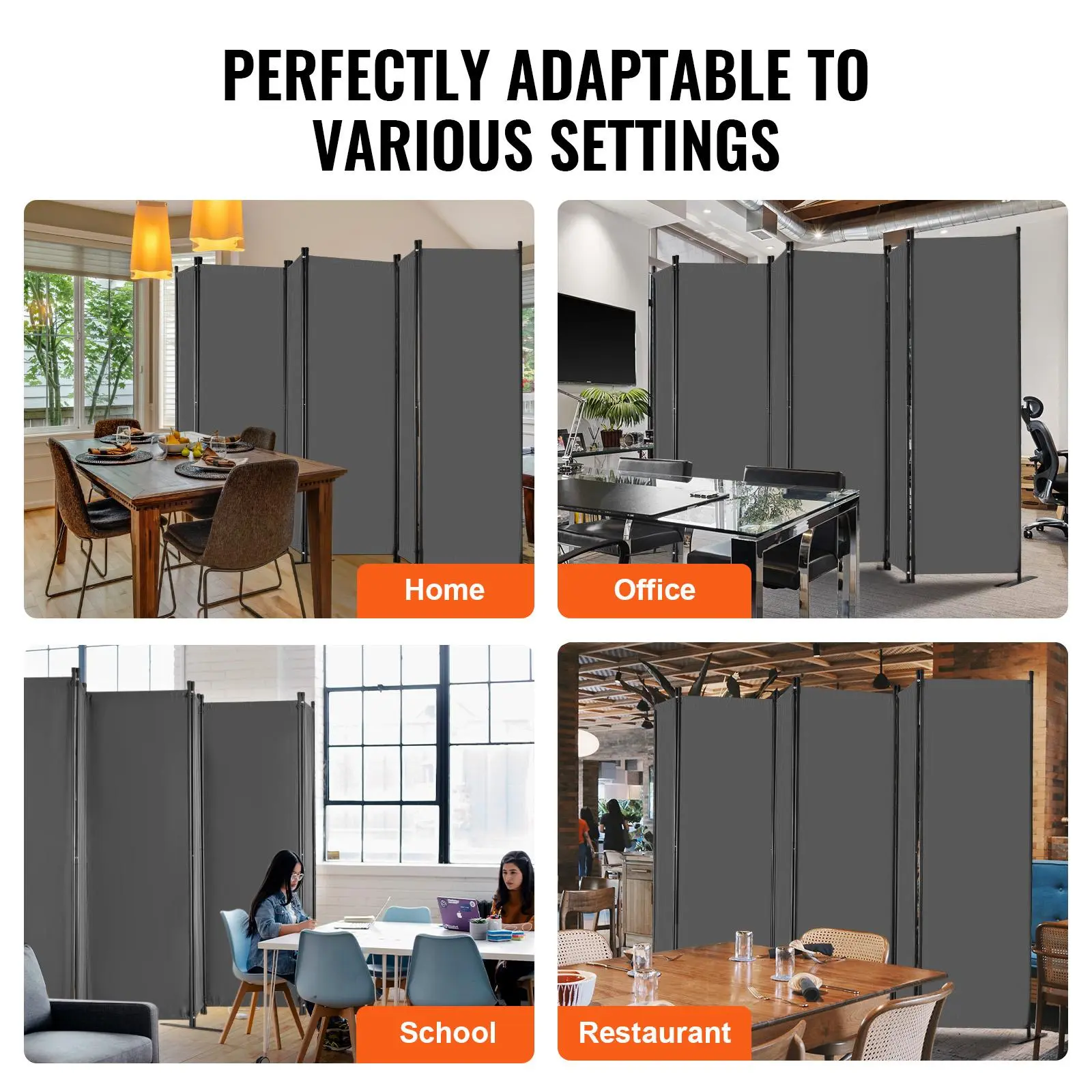 VEVOR Room Divider, 6 Panel Room Divider, Folding Privacy Screen and Portable Partition Divider for Room Separation, Freestanding Room Partitions for Office, Bedroom, Study, Grey