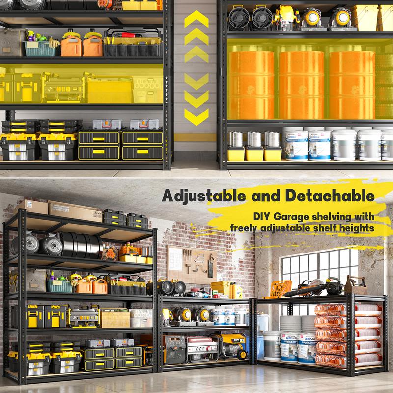 【72“H x 48”W x 24"D Multi-Purpose Garage Storage】5 tier garage shelves dimensions perfectly fit garages, pantries, kitchens, basements, closets, living rooms, storage rooms, libraries, offices, schools, warehouses, supermarkets, and more effortlessly solving your storage challenges.