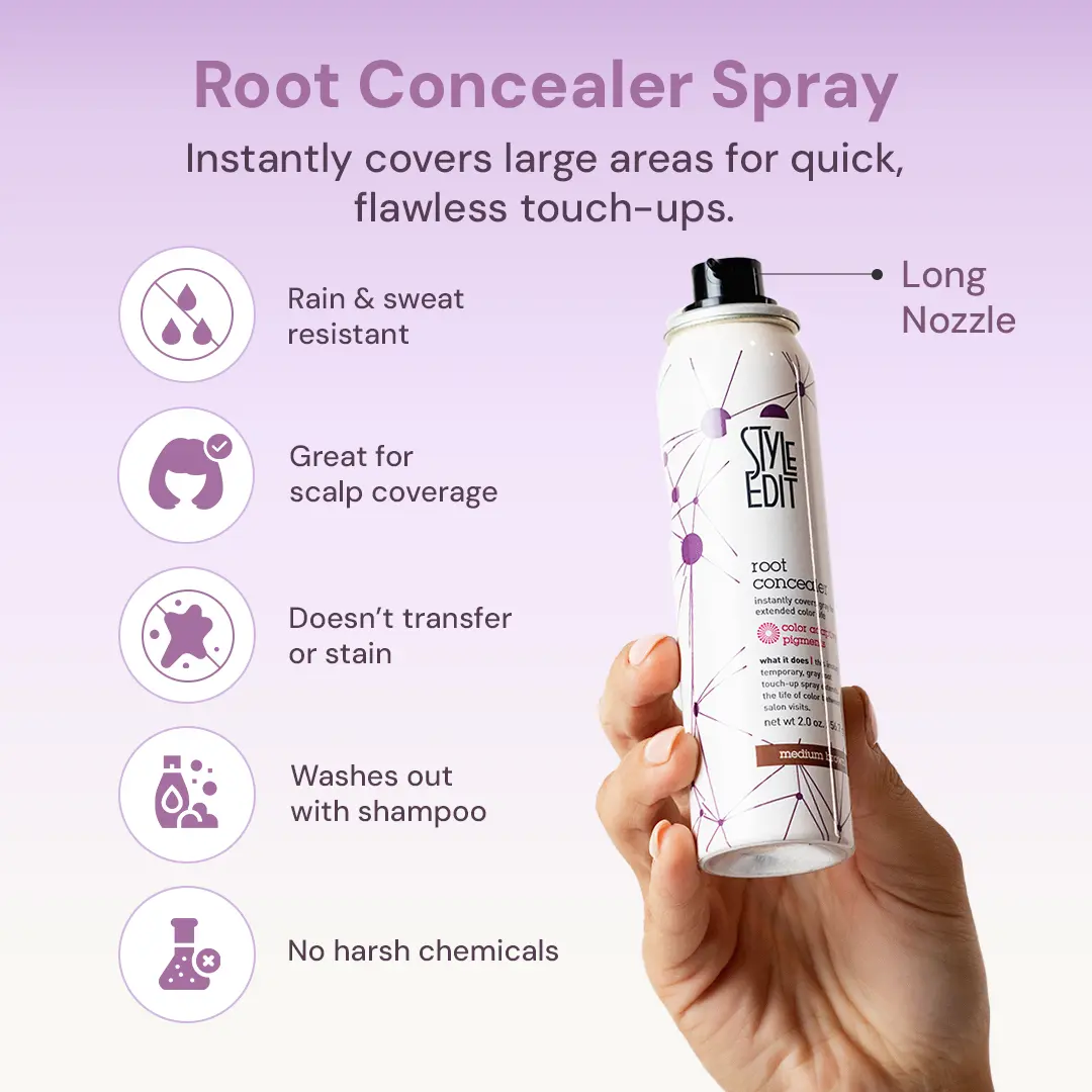 This Root Concealer Touch-Up Spray effectively covers gray roots with a quick-drying, non-sticky formula that lasts until your next shampoo. However you must choose the right shade and apply lightly for best results. Highly recommend 🫶🏾