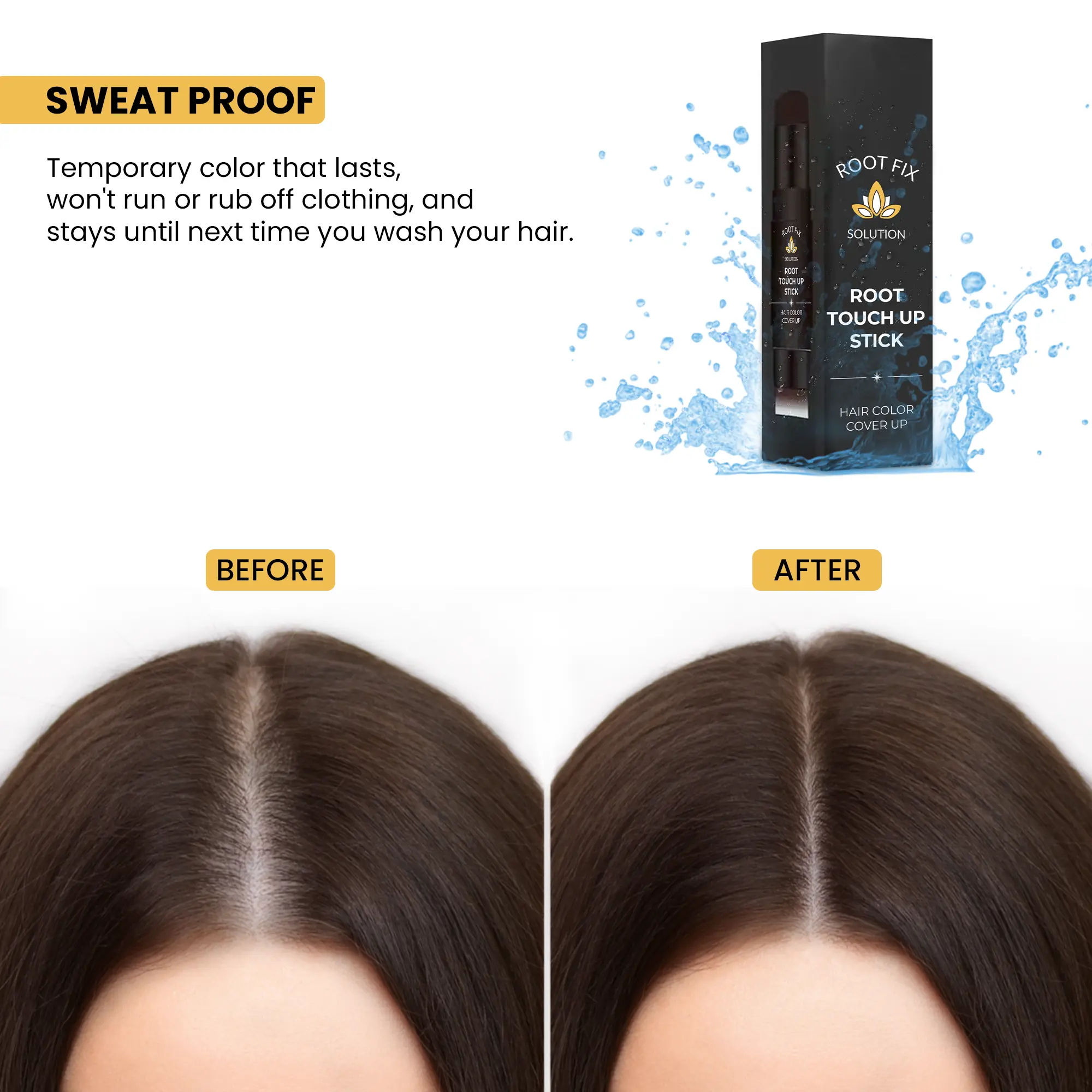 Say goodbye to visible roots and grays in seconds! Our Touch up cover stick is your go-to solution for on-the-go touch-ups and flawless blending. Designed for precision and ease, this convenient stick format glides on smoothly and delivers rich, natural-looking color that stays put until your next shampoo.