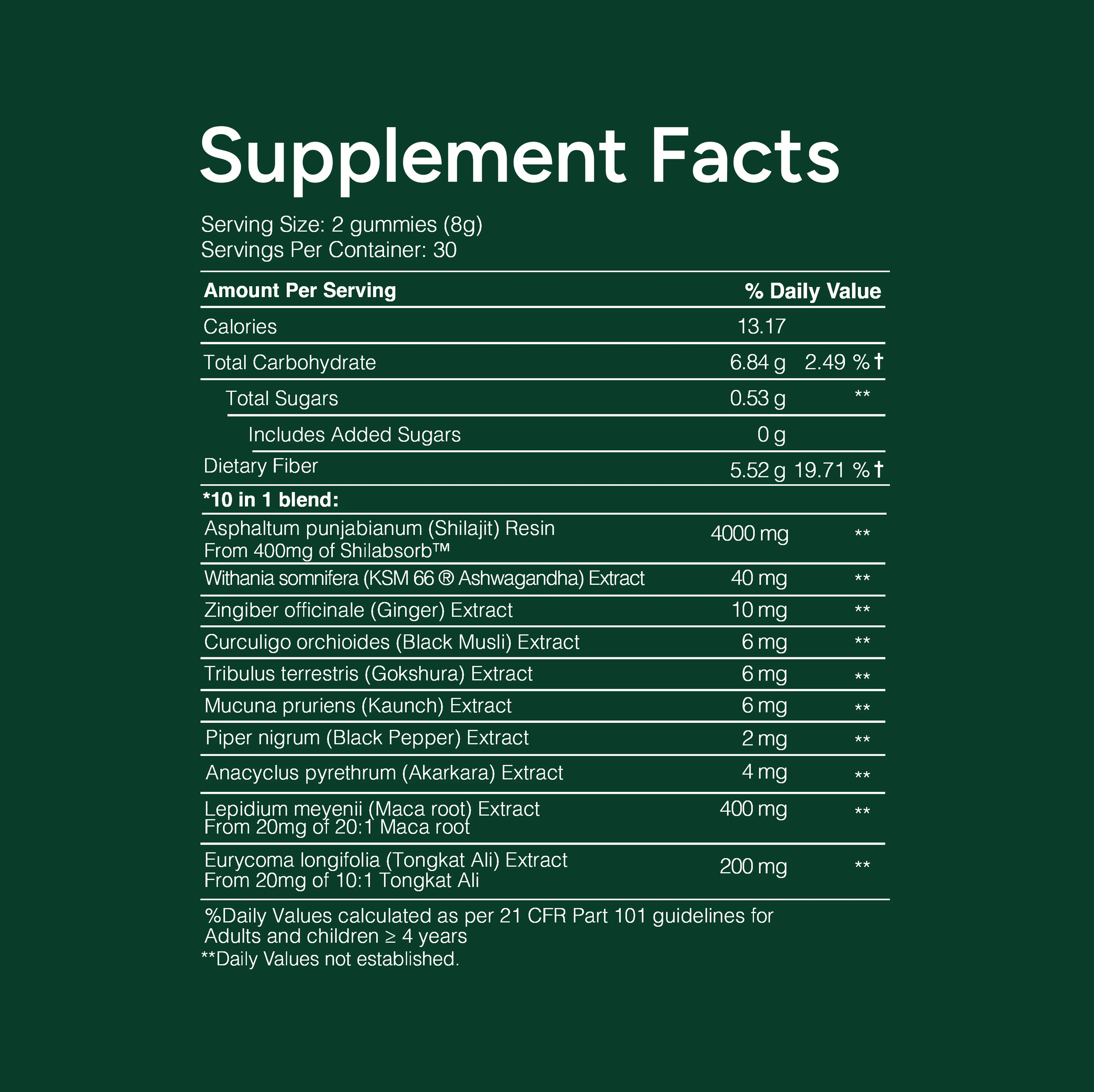 ·Shilajit (fulvic + trace minerals): Mineral backbone for daily vitality and health transformation.